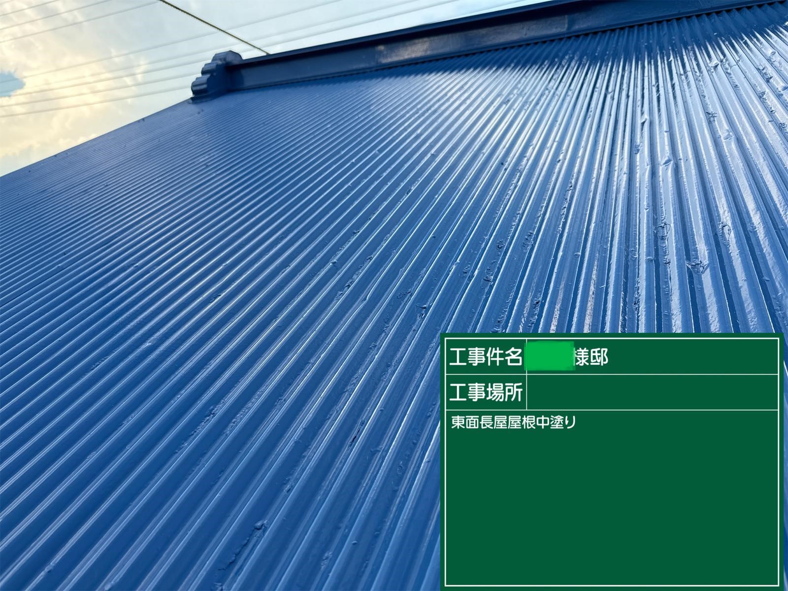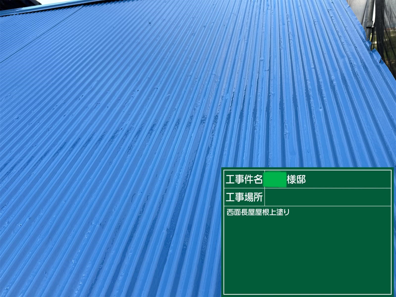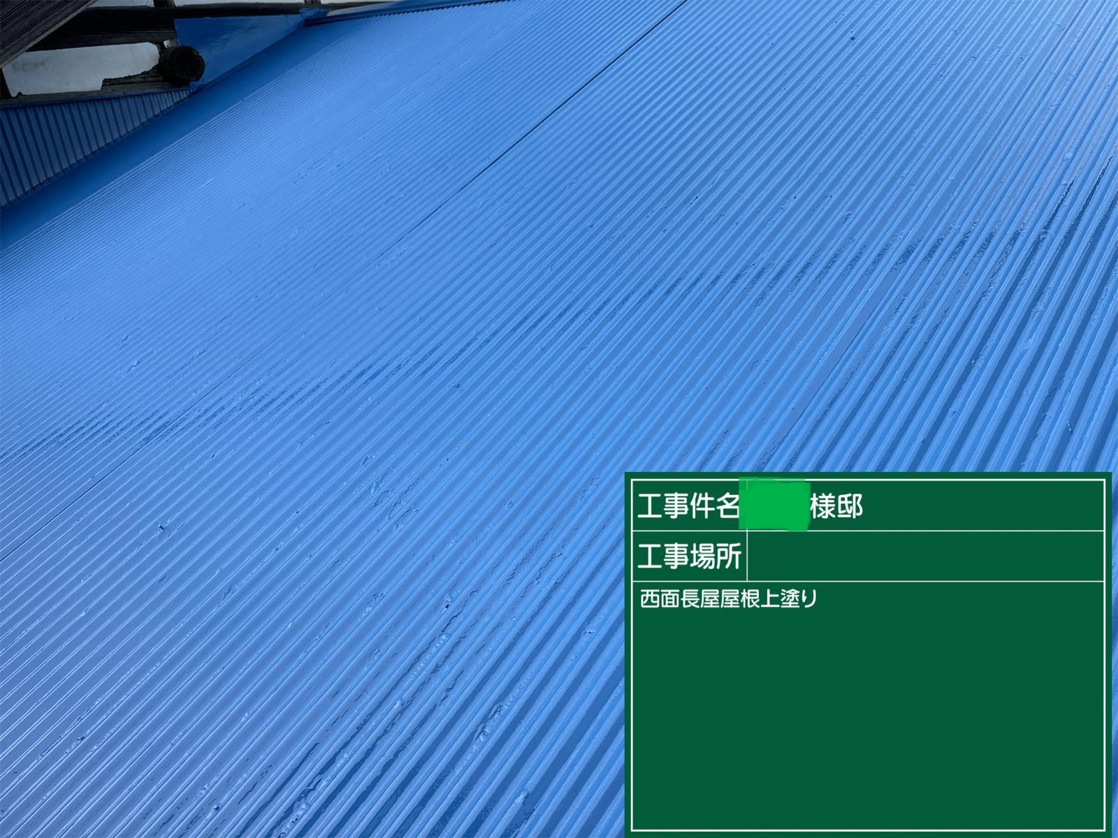 屋根の上塗りを行いました。