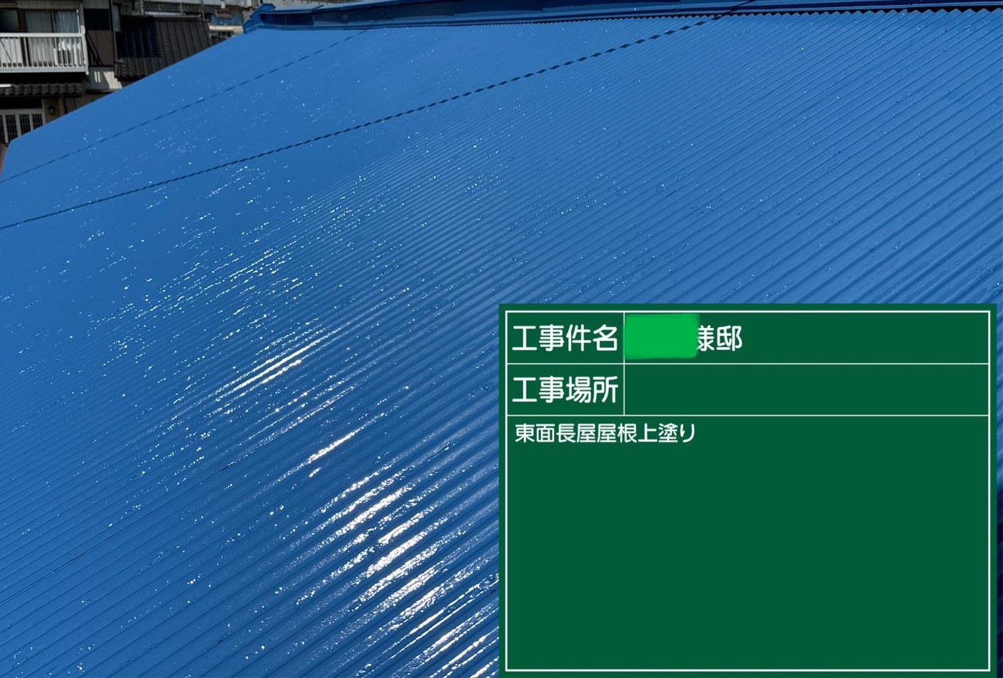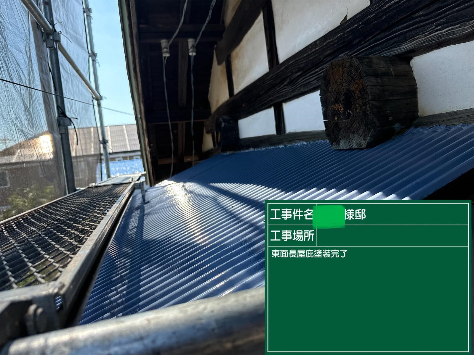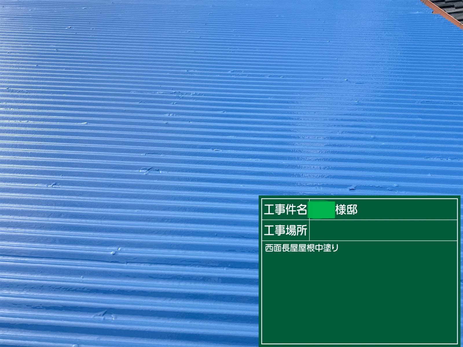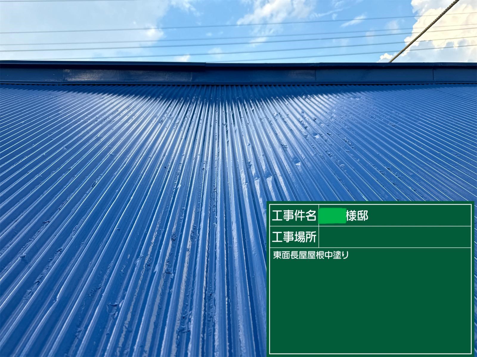屋根の上塗りを行いました。