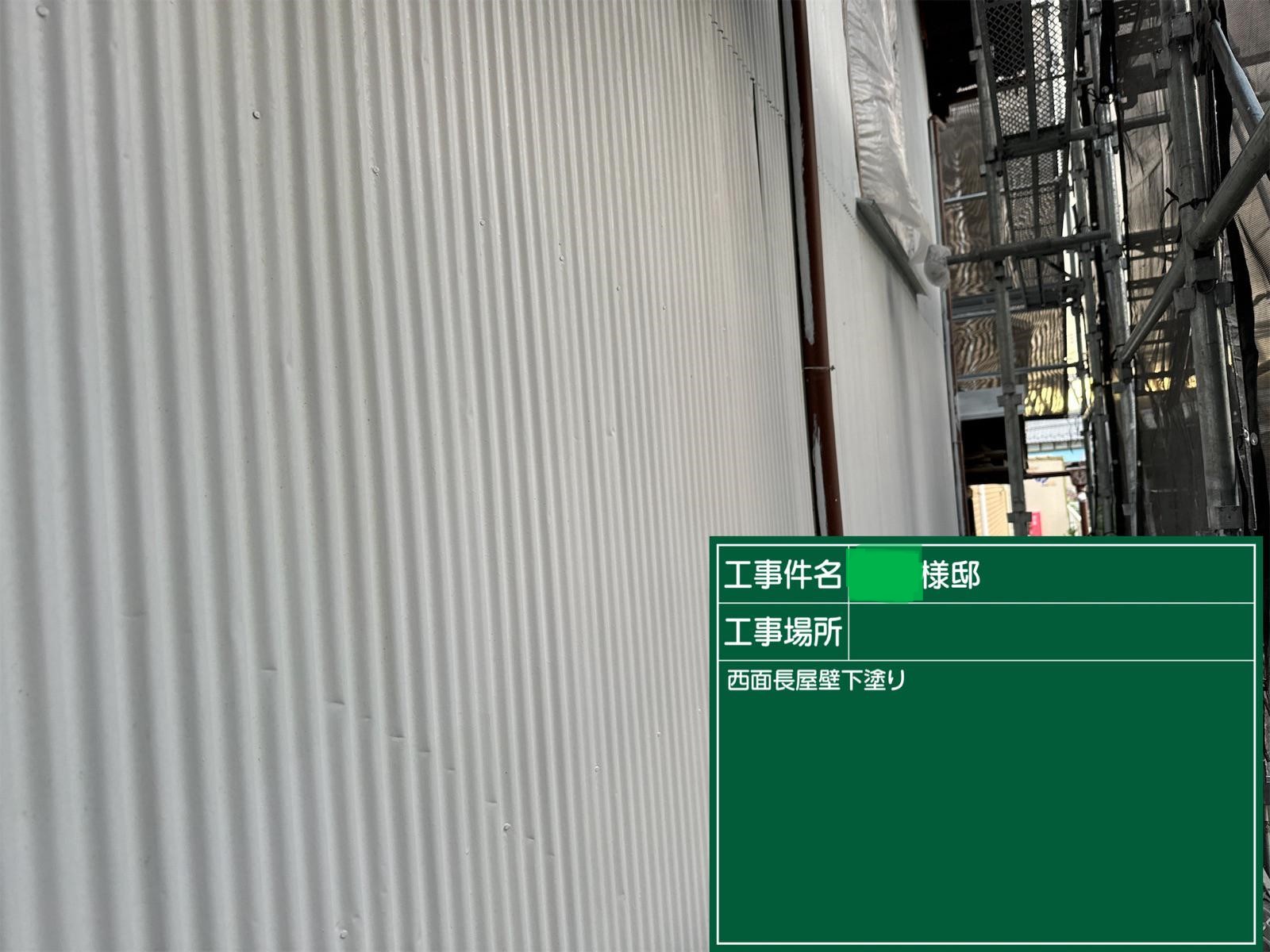外壁の下塗りを行いました。外壁材と中塗り上塗り塗料との密着力を強め防水性と耐候性に優れた塗膜を作り出します!