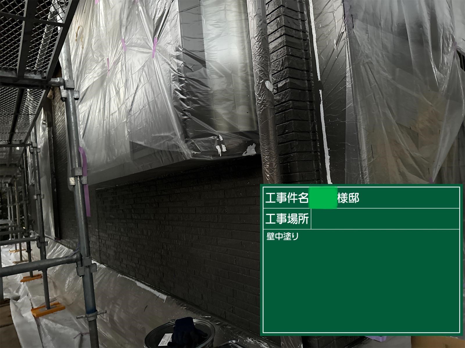 外壁の中塗りを行いました。