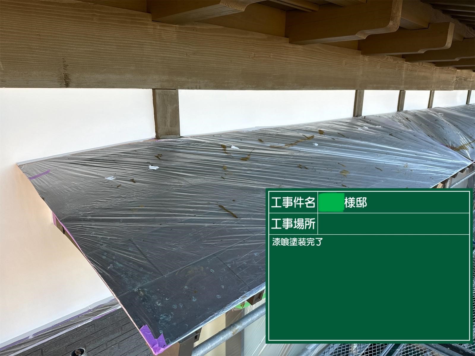 外壁の上塗りを行いました。