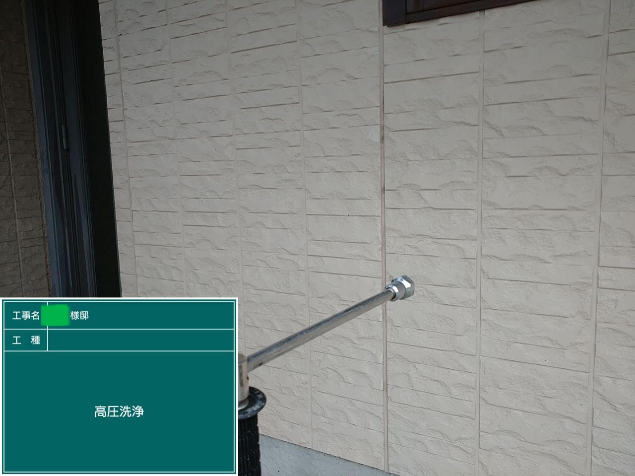 外壁に付着した汚れなどを洗い流します。