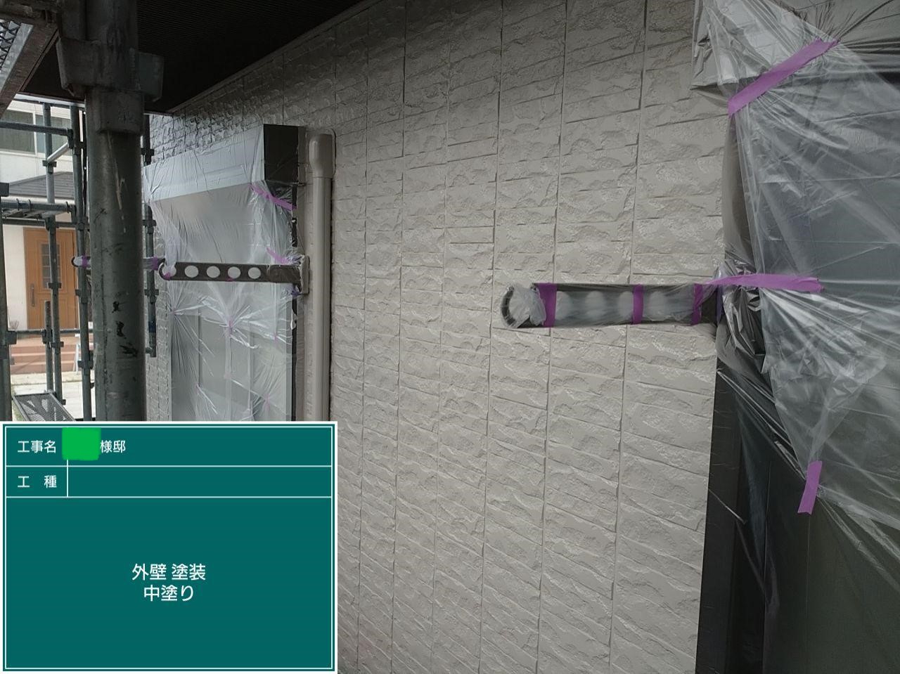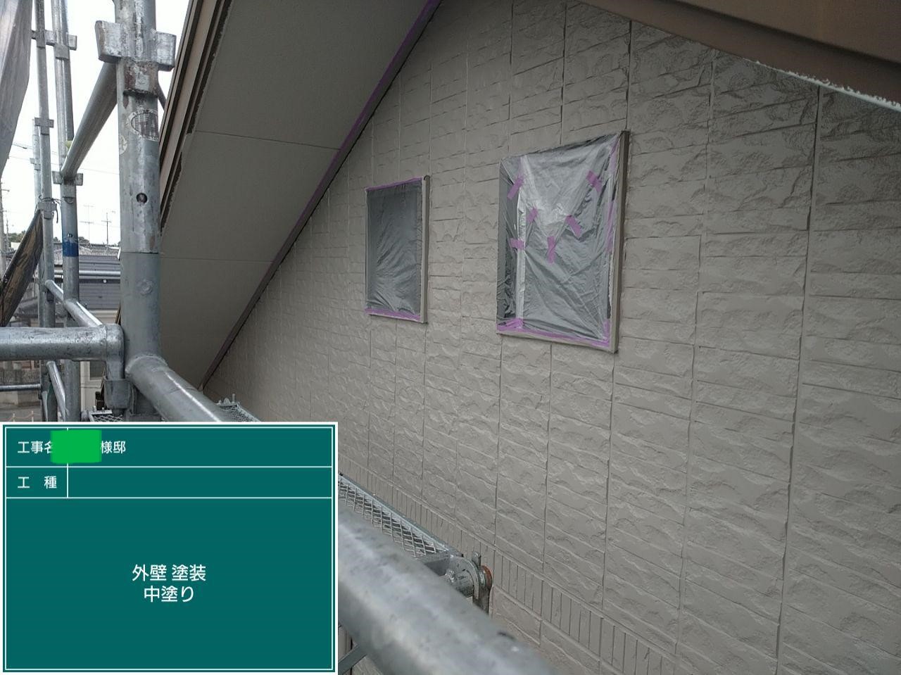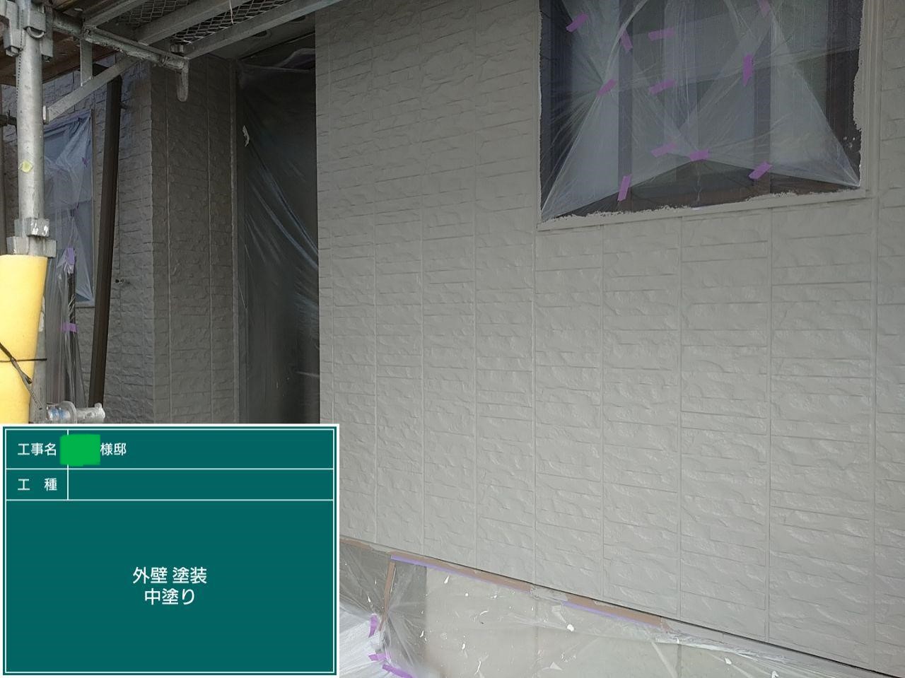 外壁の中塗りを行いました。