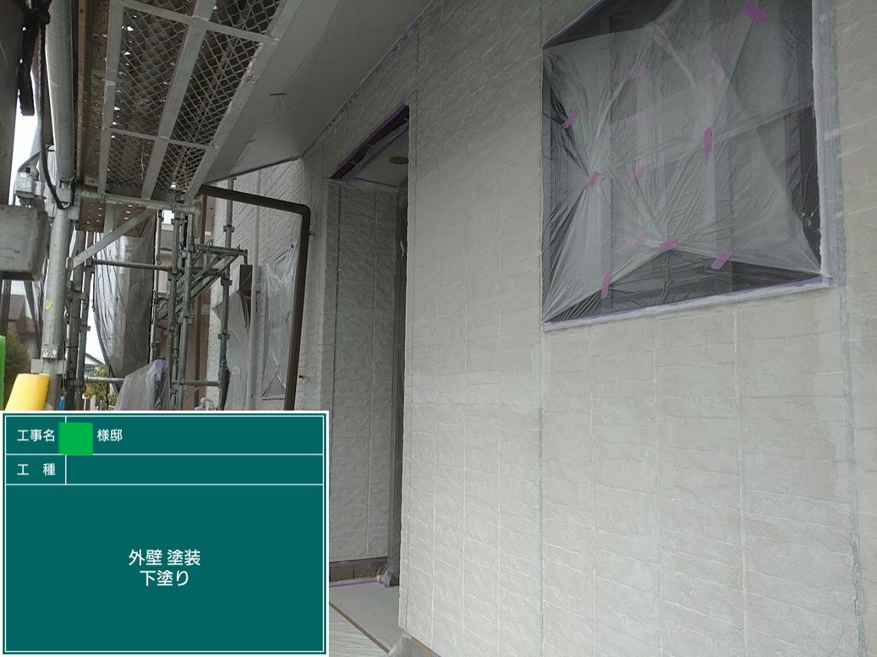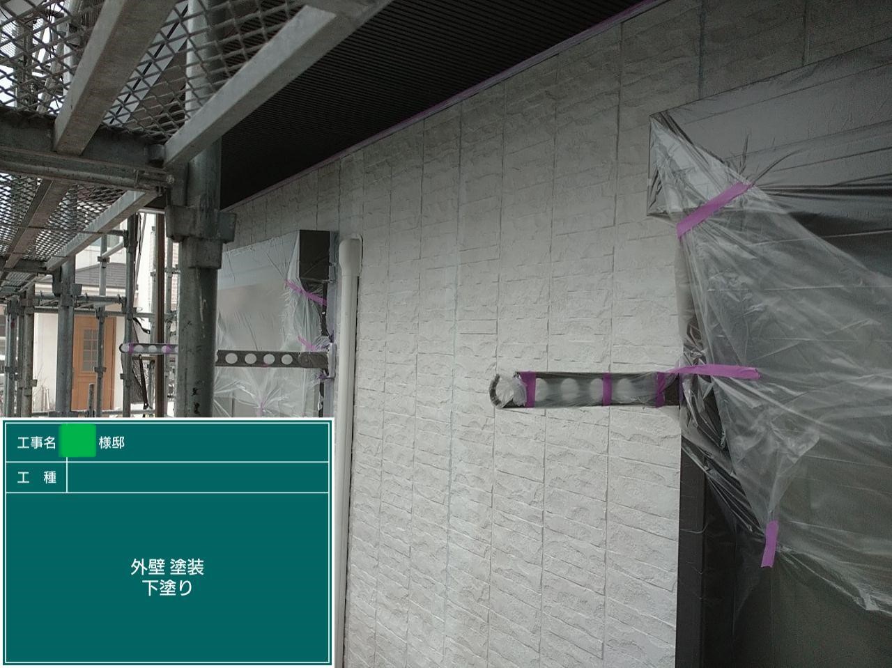 外壁の下塗りを行いました。