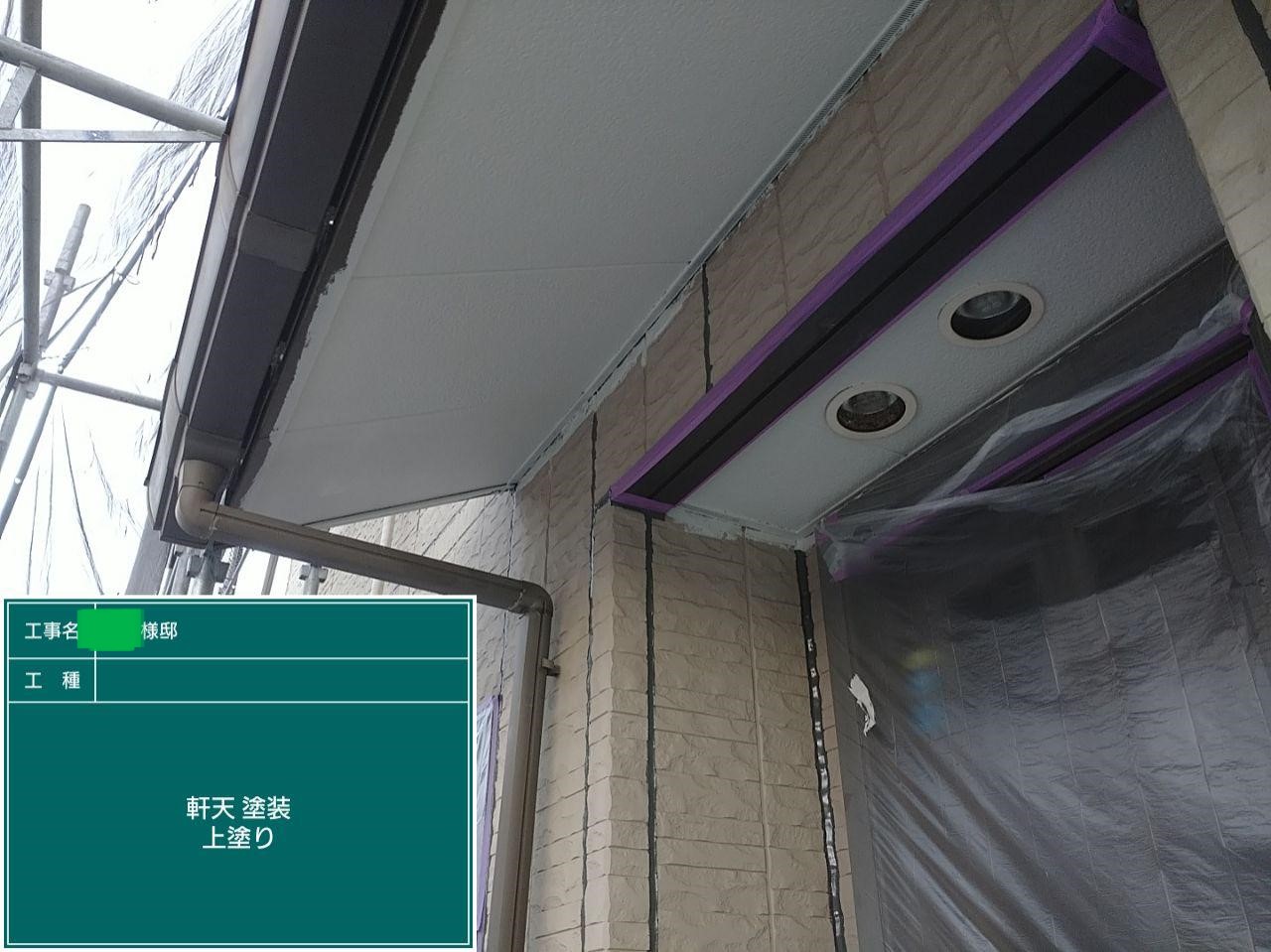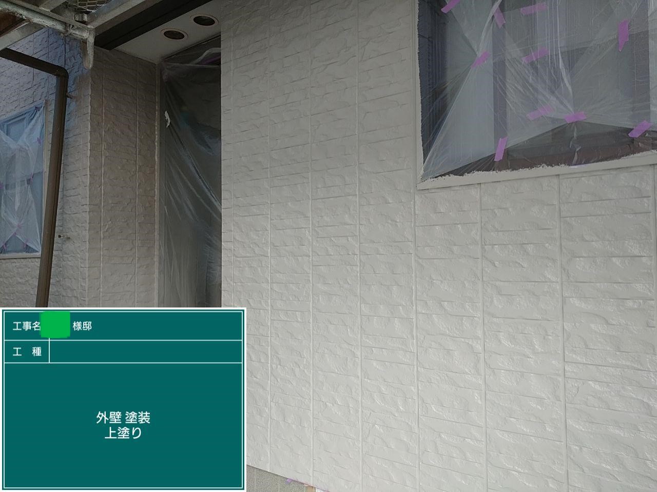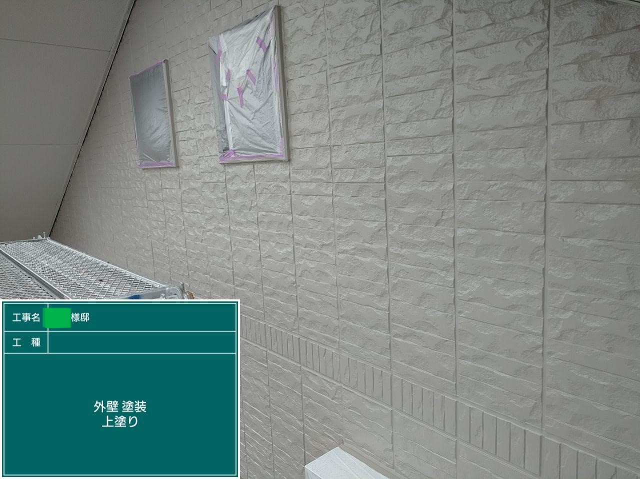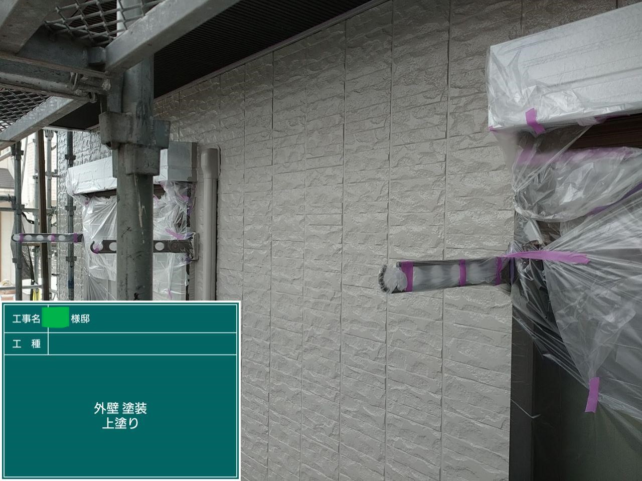 外壁の上塗りを行いました。