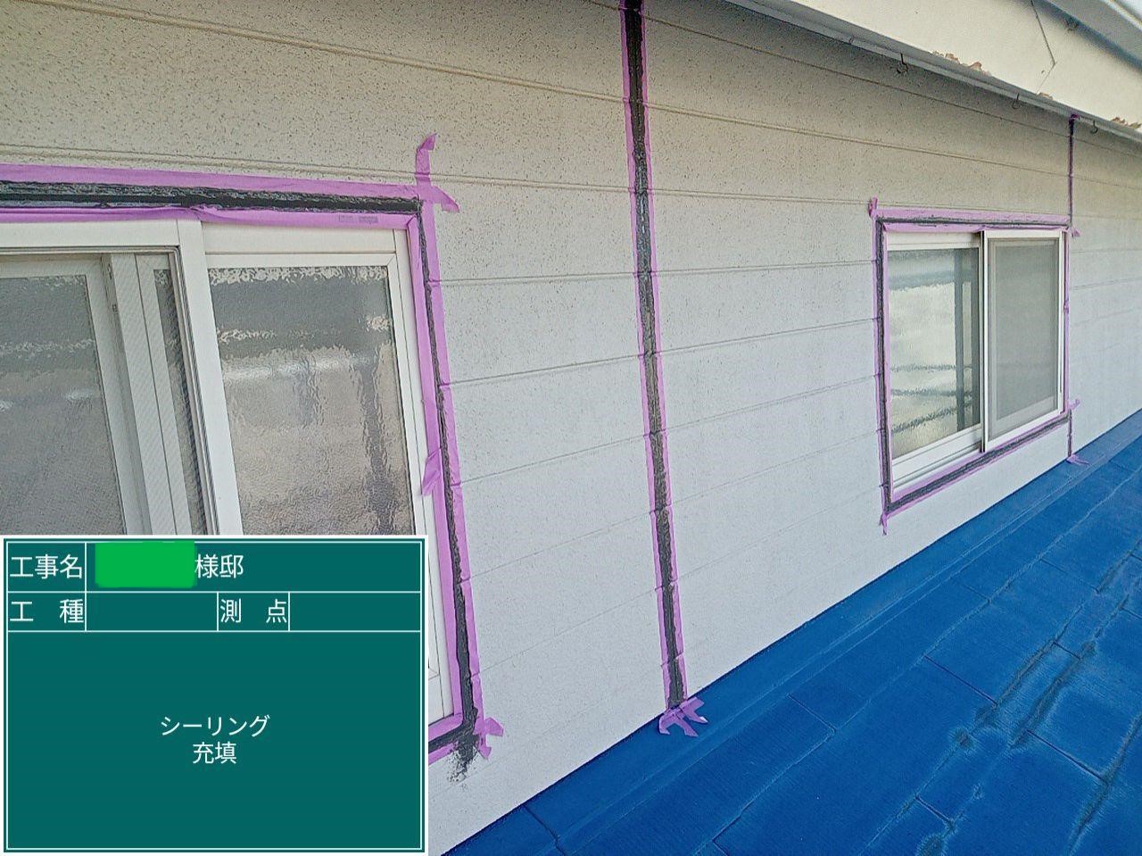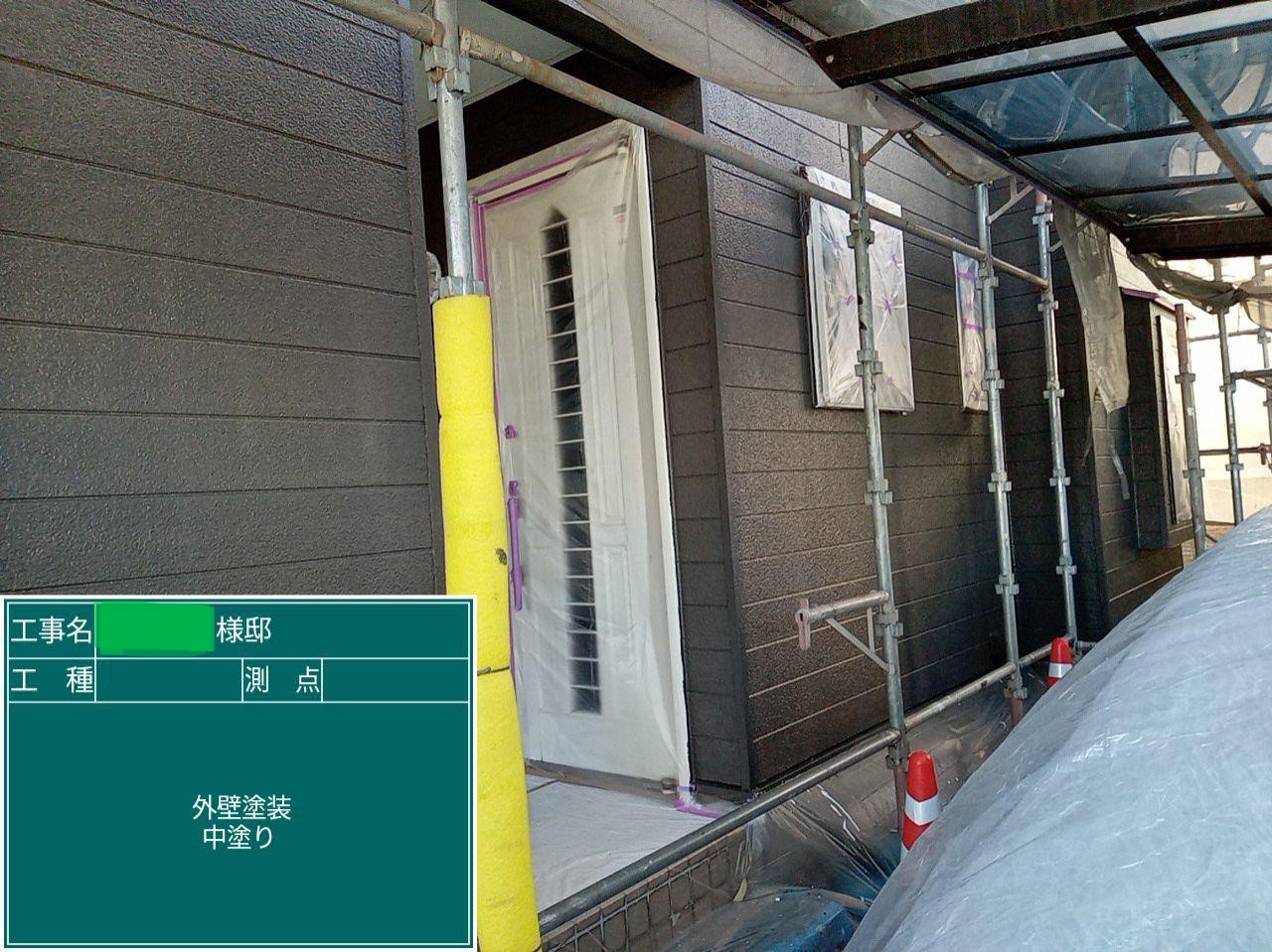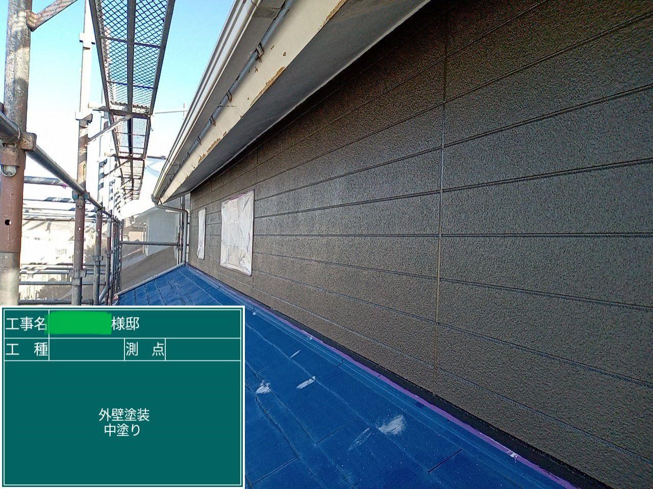 外壁の中塗りを行いました。