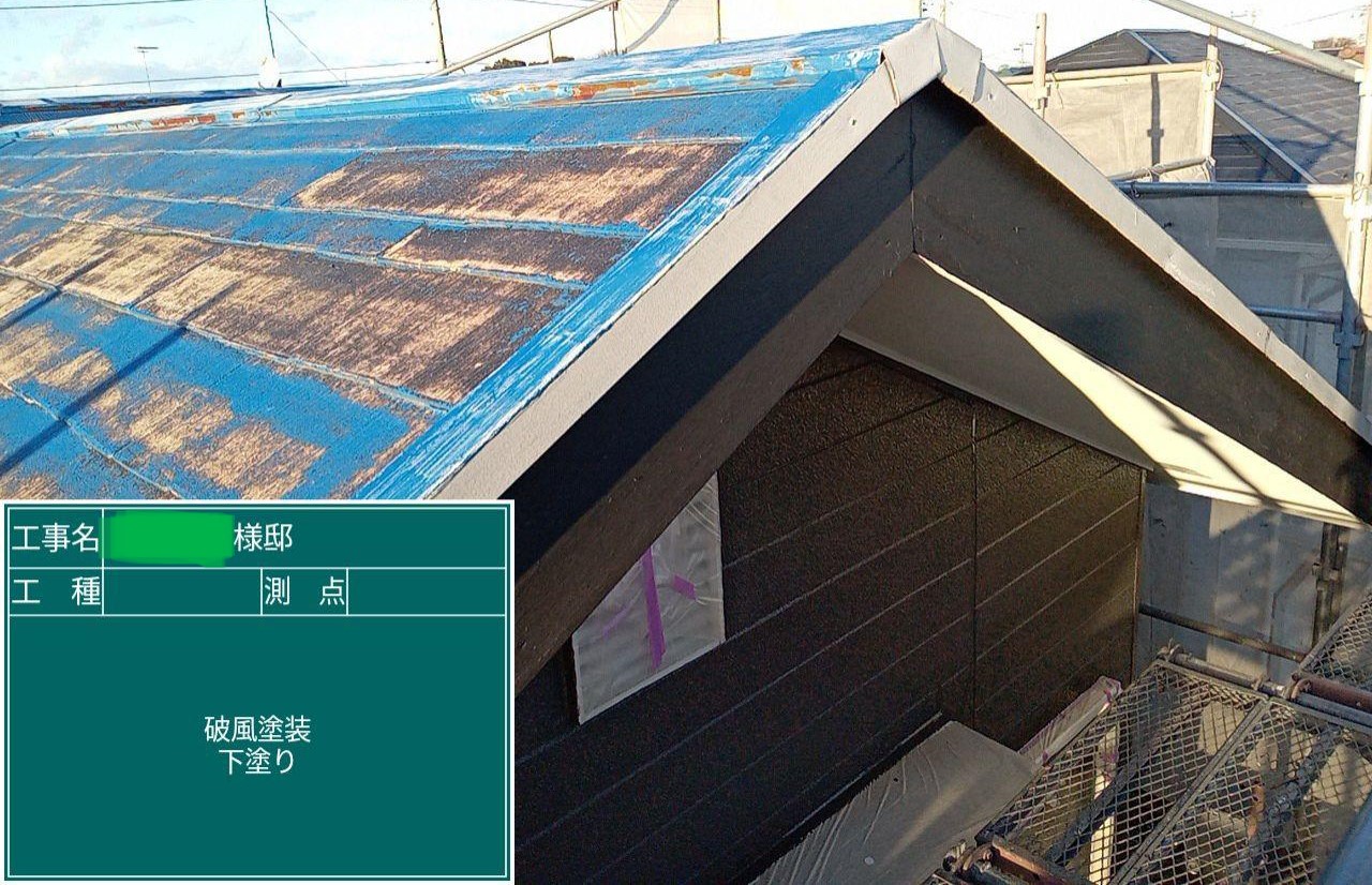 屋根の下塗りを行いました。