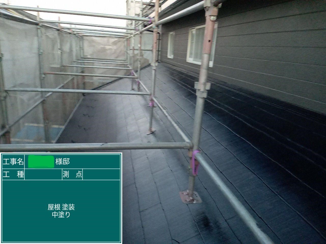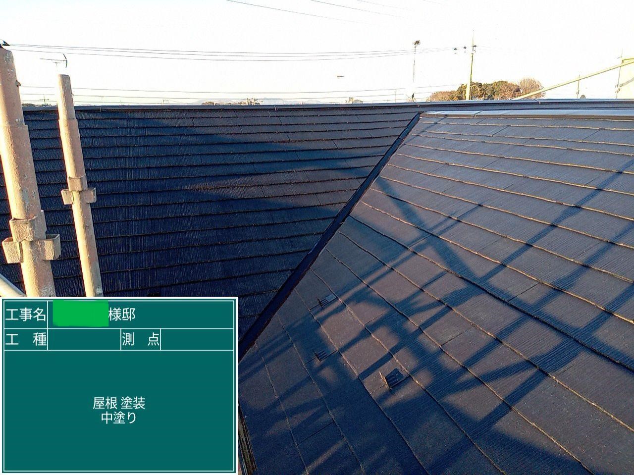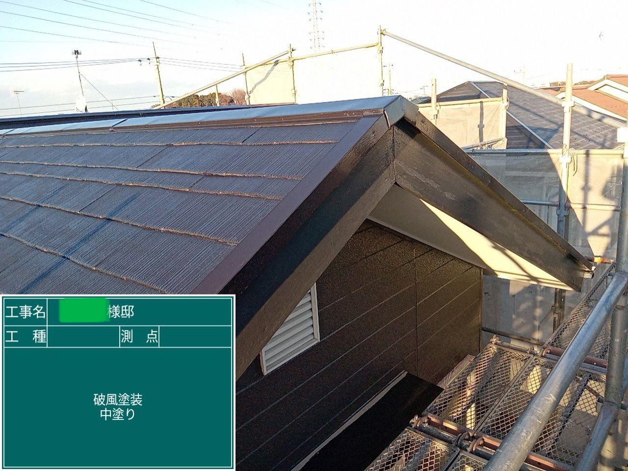 屋根の中塗りを行いました。