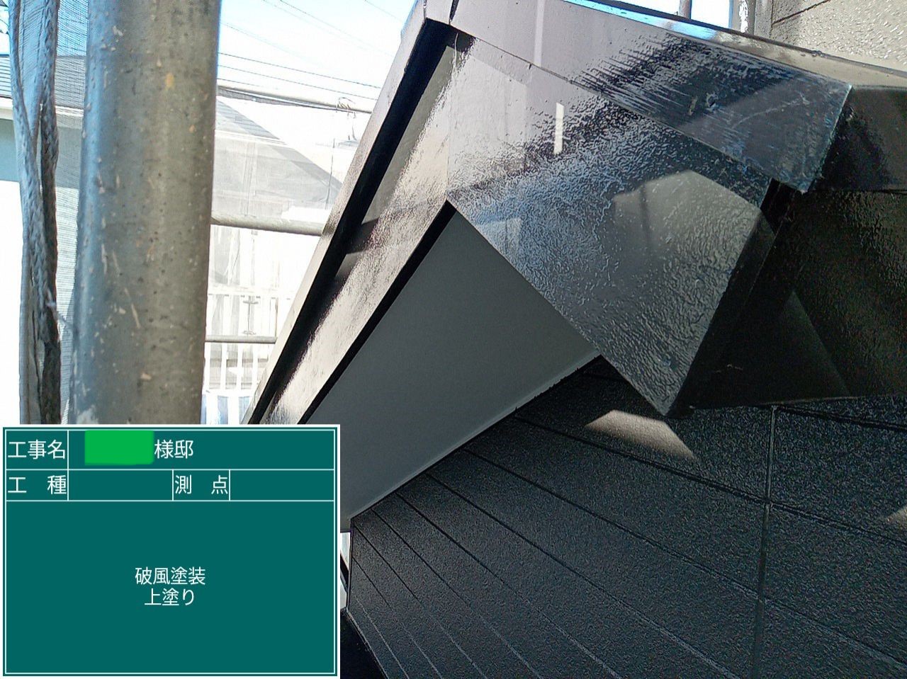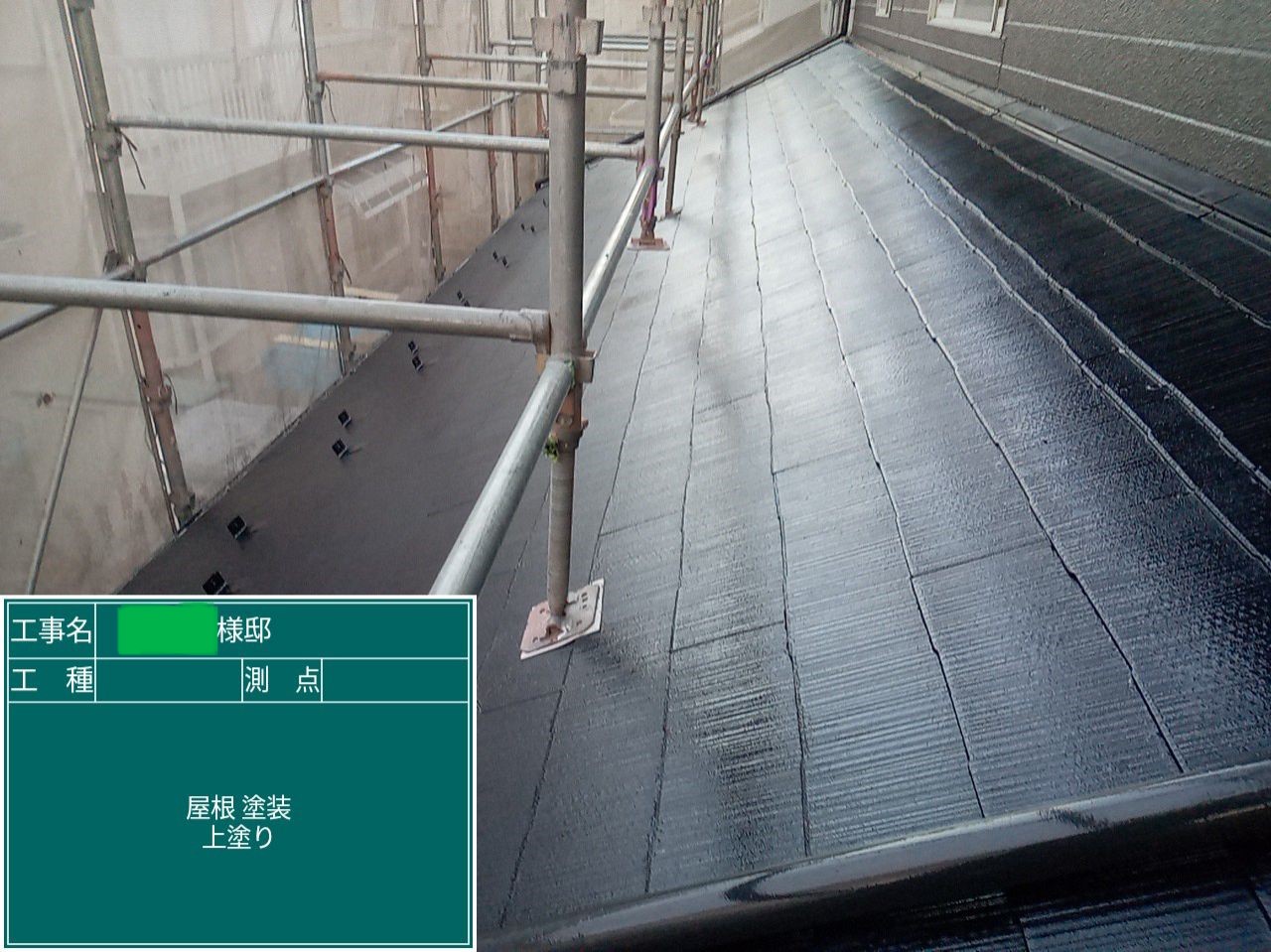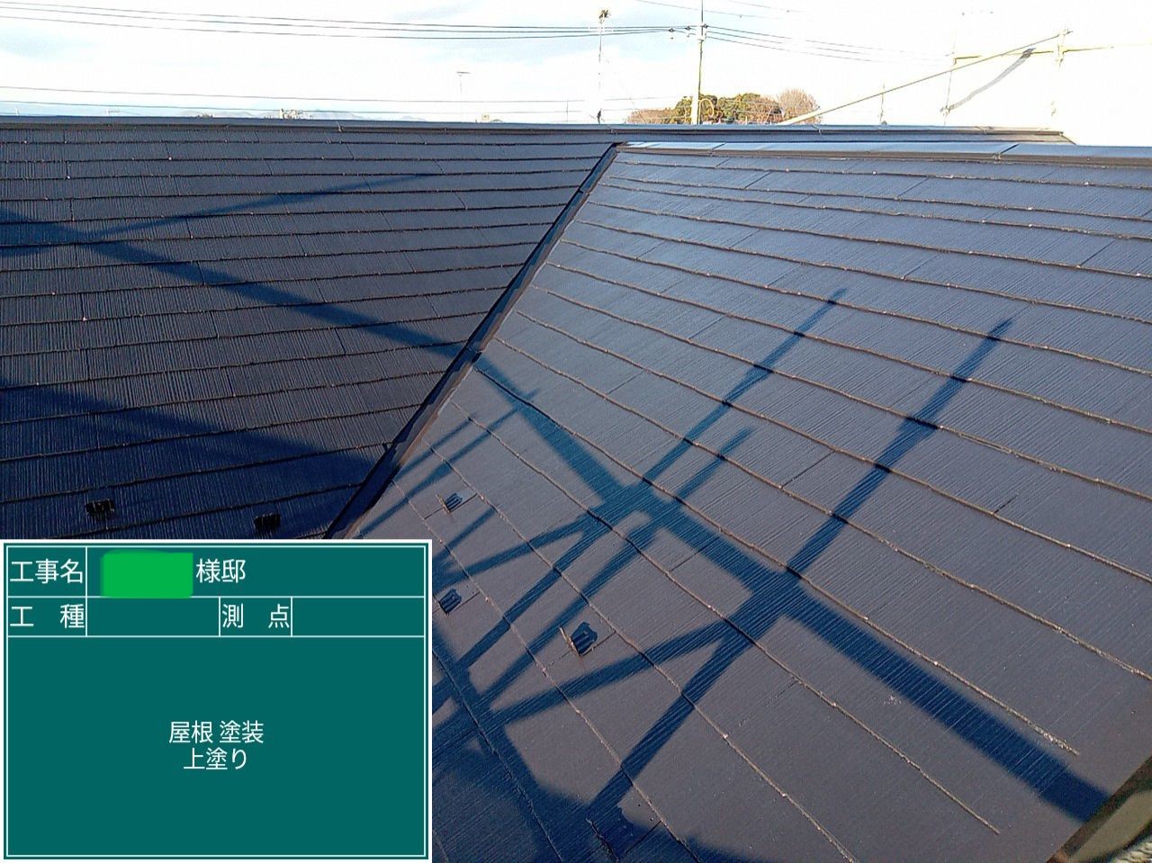 屋根の上塗りを行いました。
