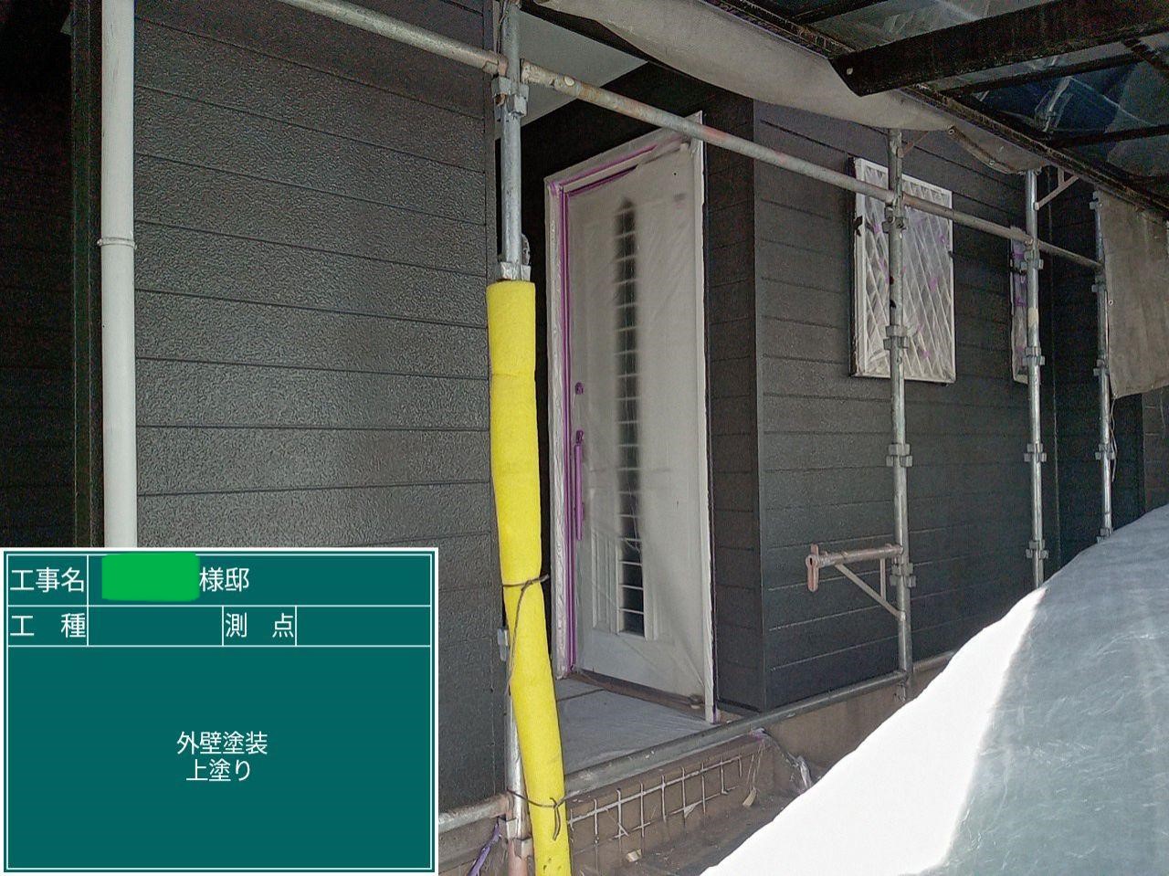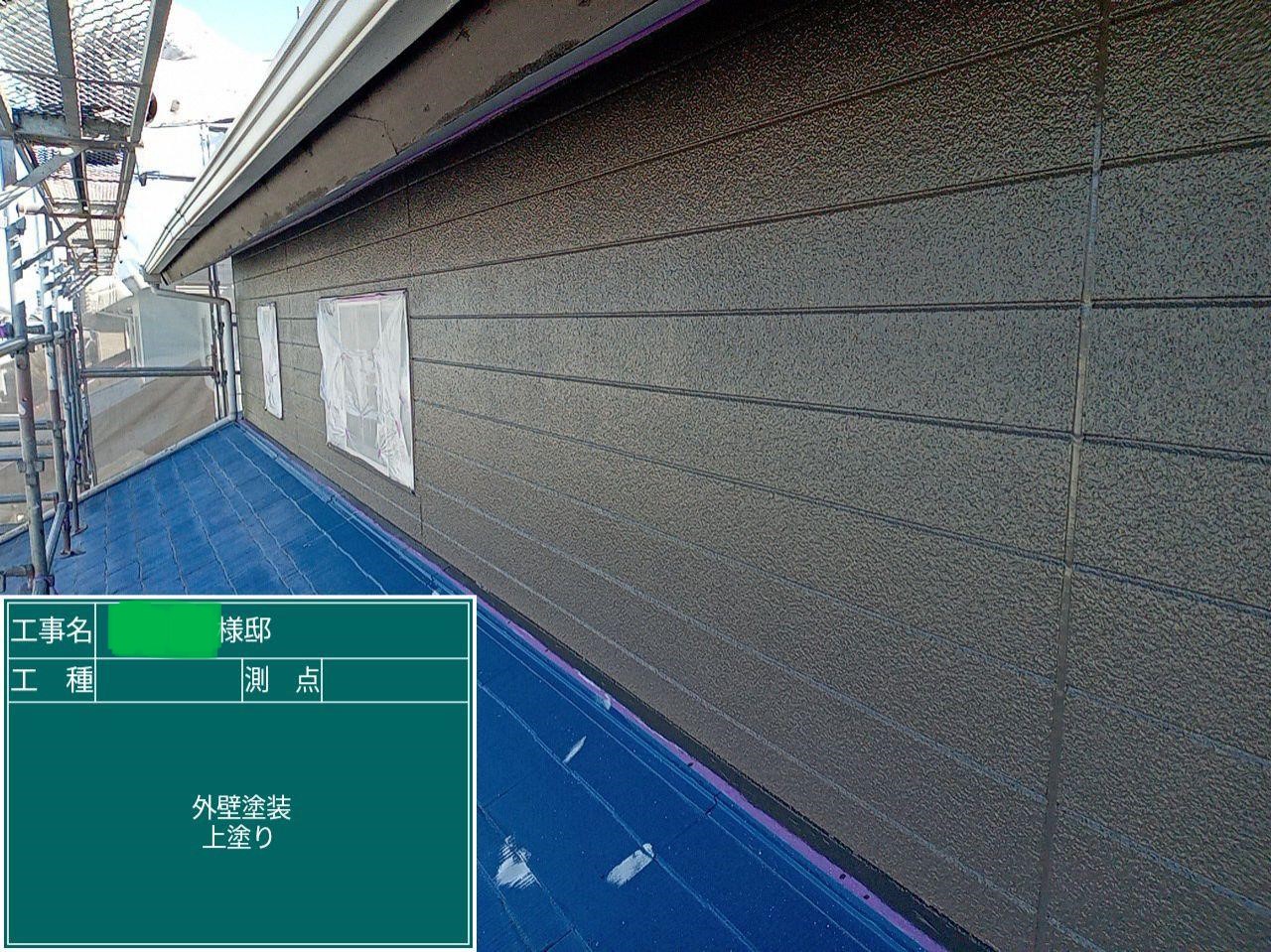 外壁の上塗りを行いました。