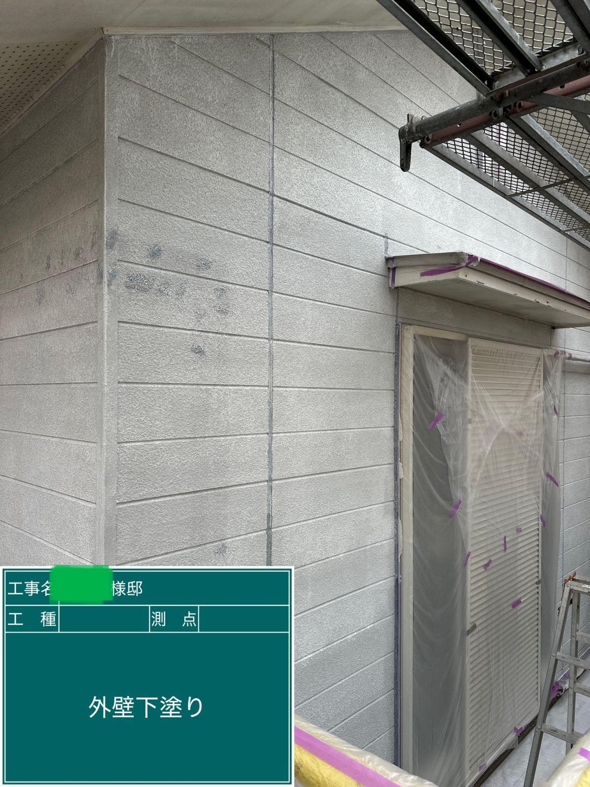 外壁の下塗りを行いました。