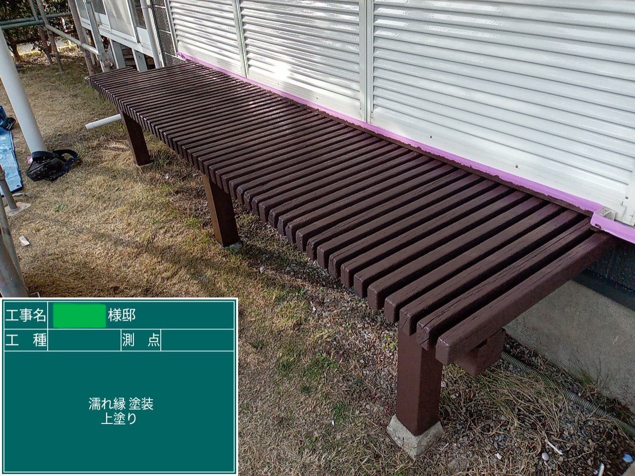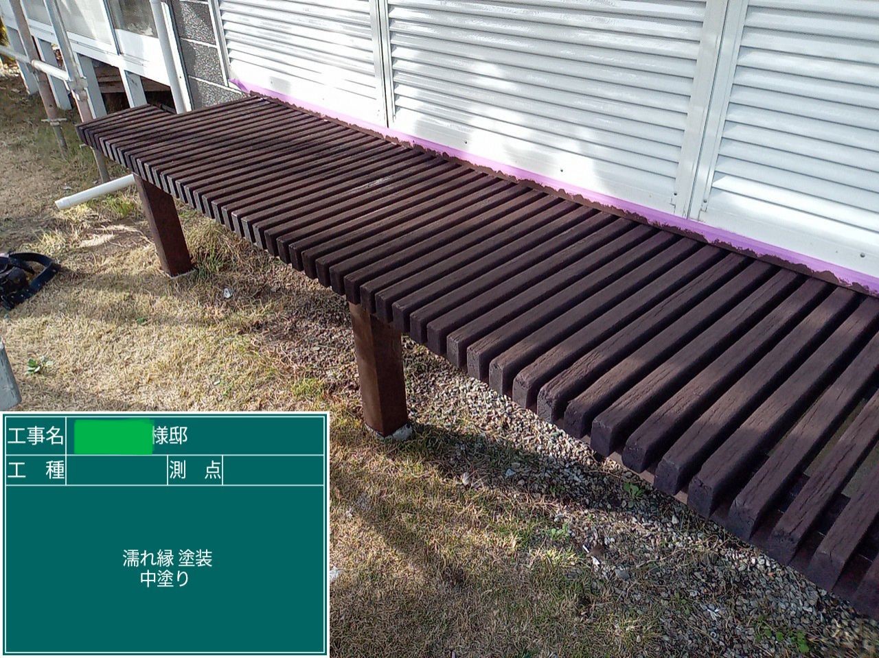 中塗り➡上塗りと2回に分けて塗装する事で性能を耐久年数の間しっかり持続させるために中塗りの塗装が必須です。
