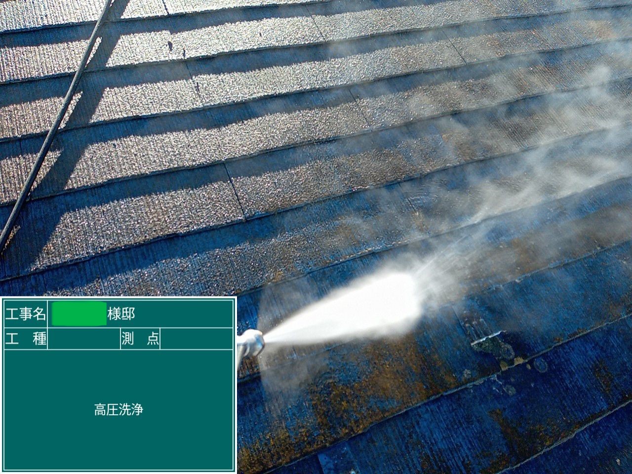 屋根高圧洗浄 屋根に付着した汚れなどを洗い流します。