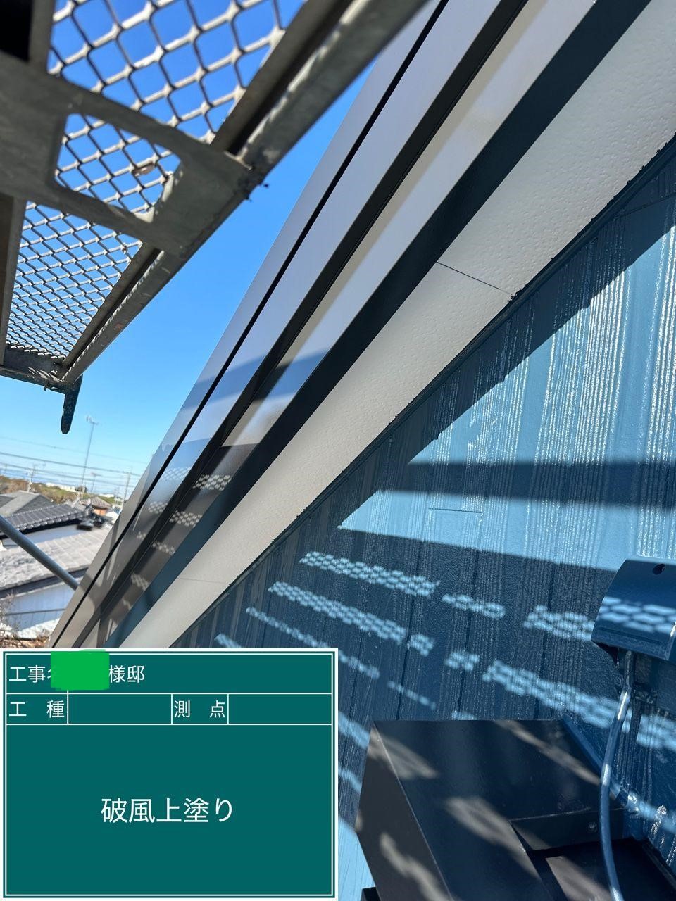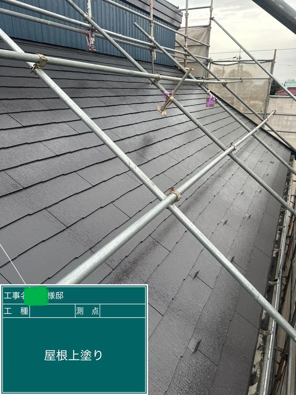 屋根の上塗りを行いました。
