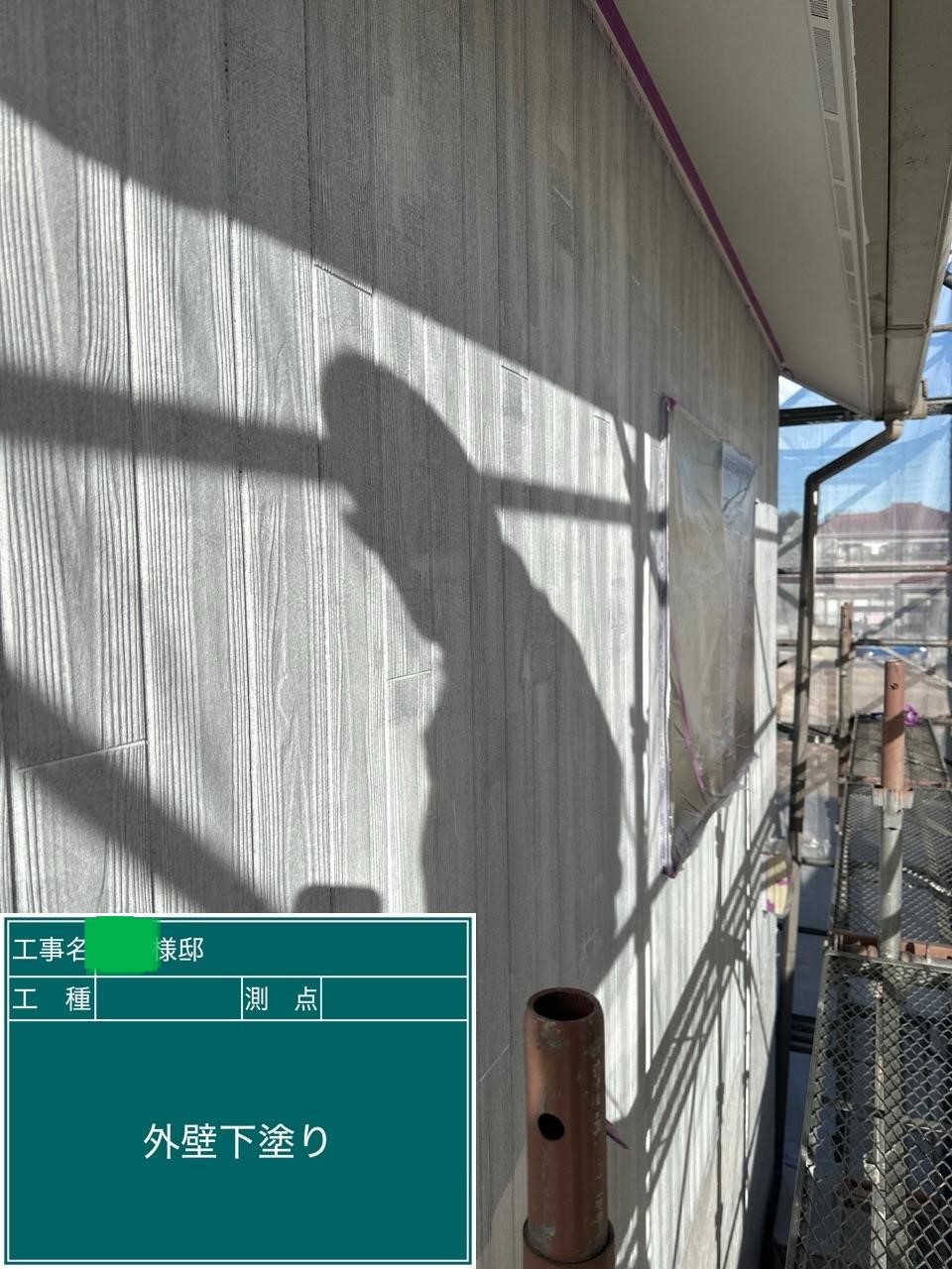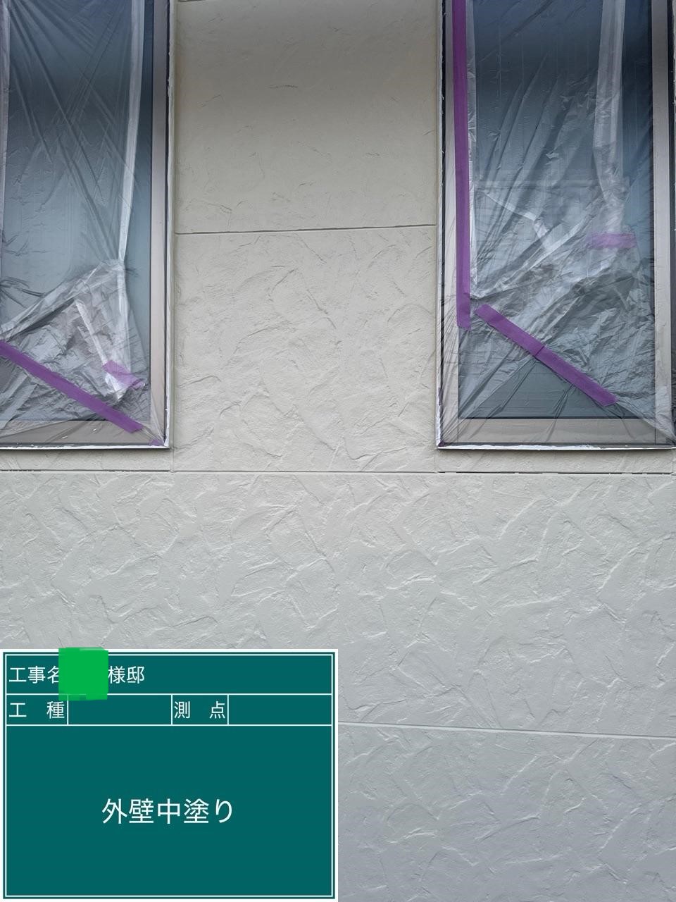 外壁の中塗りを行いました。