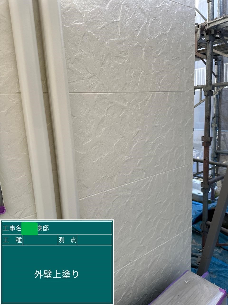 外壁の上塗りを行いました。