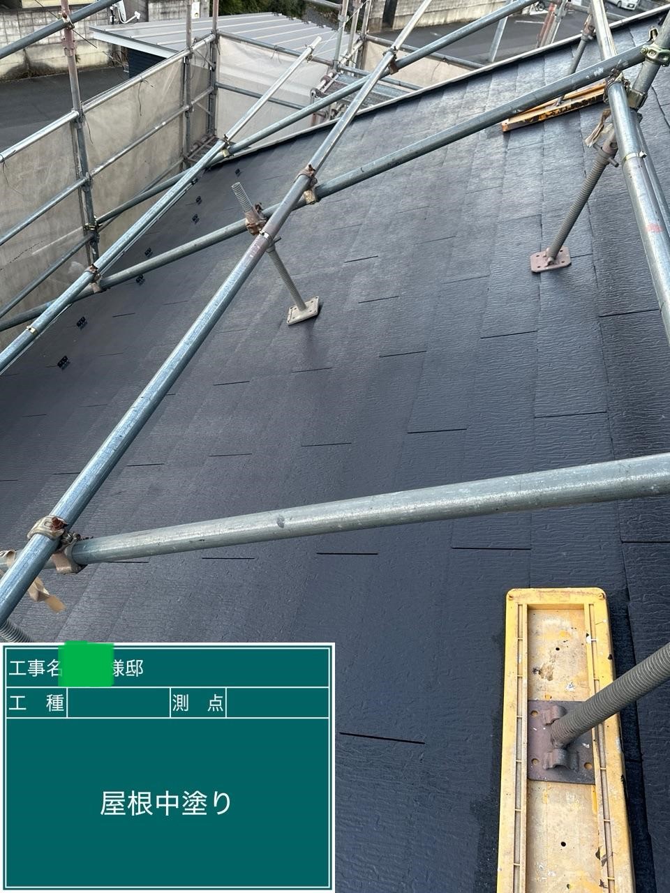 屋根の中塗りを行いました。
