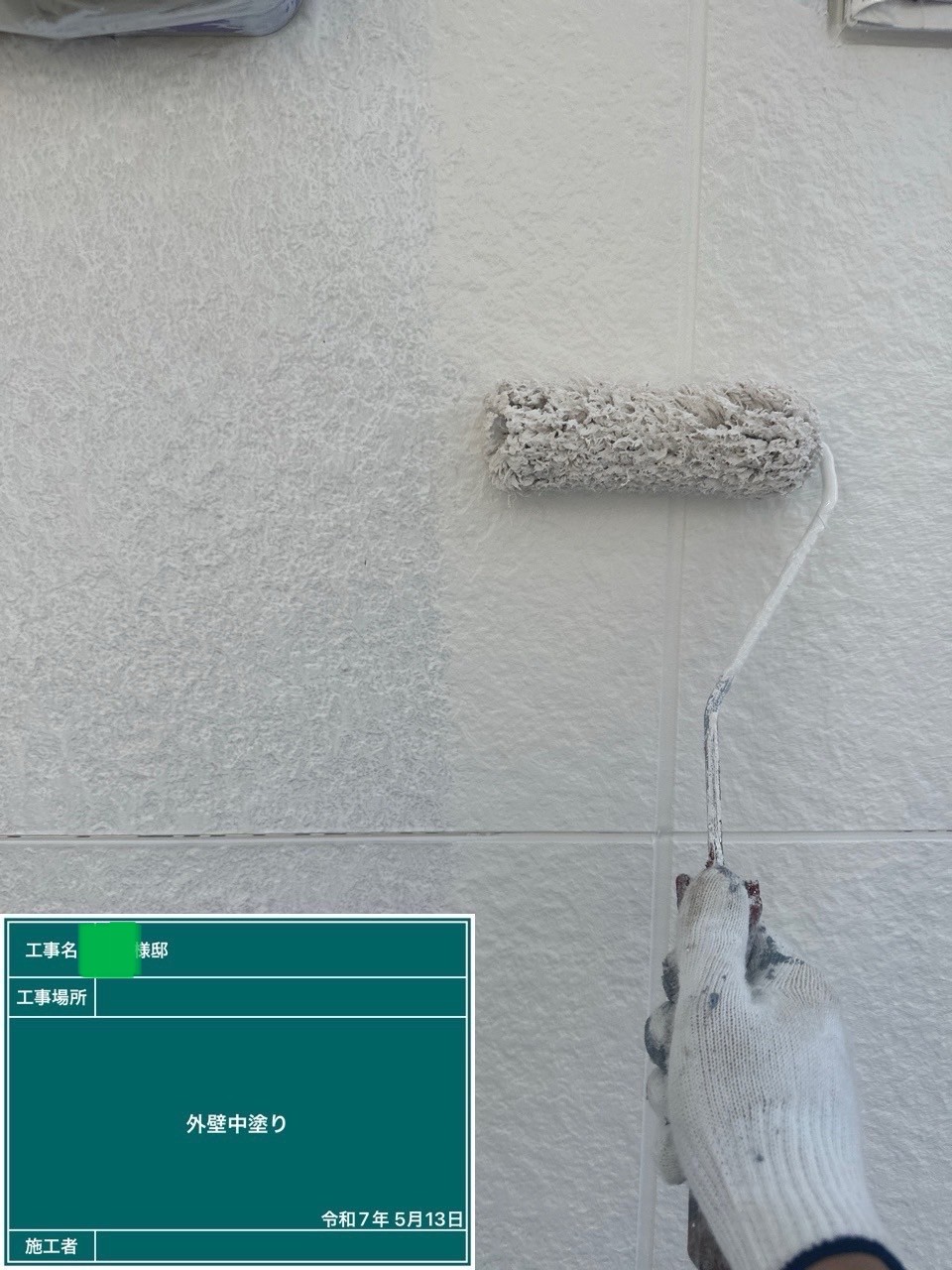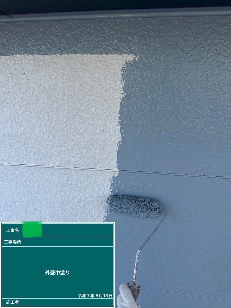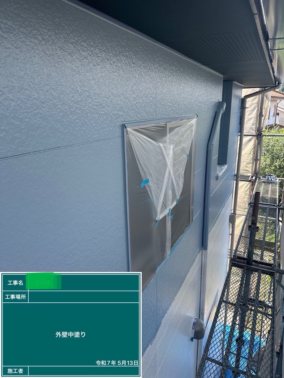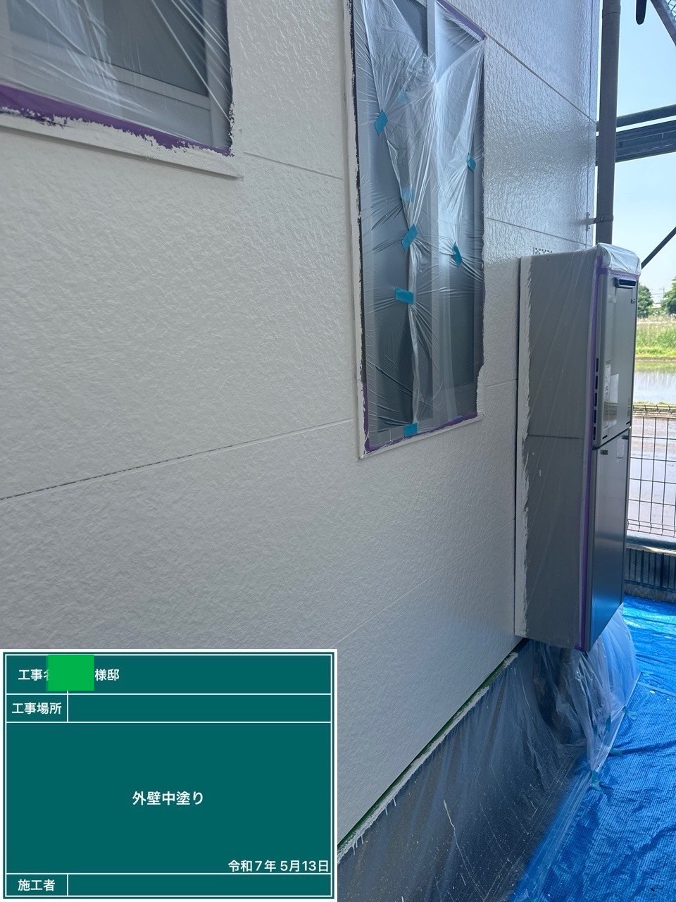 外壁の中塗りを行いました。