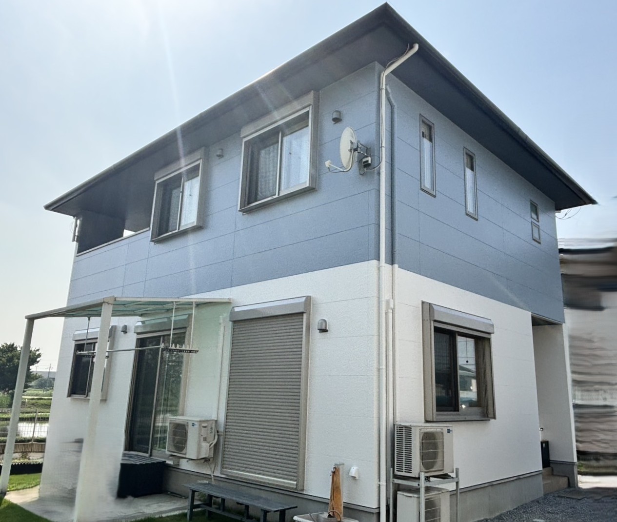 | 使用塗料 | 外壁/アステックペイント/超低汚染プラチナリファイン2000MF-IR 1F 9010(クールホワイト)、2F 9017(ブルーグレイ) |
