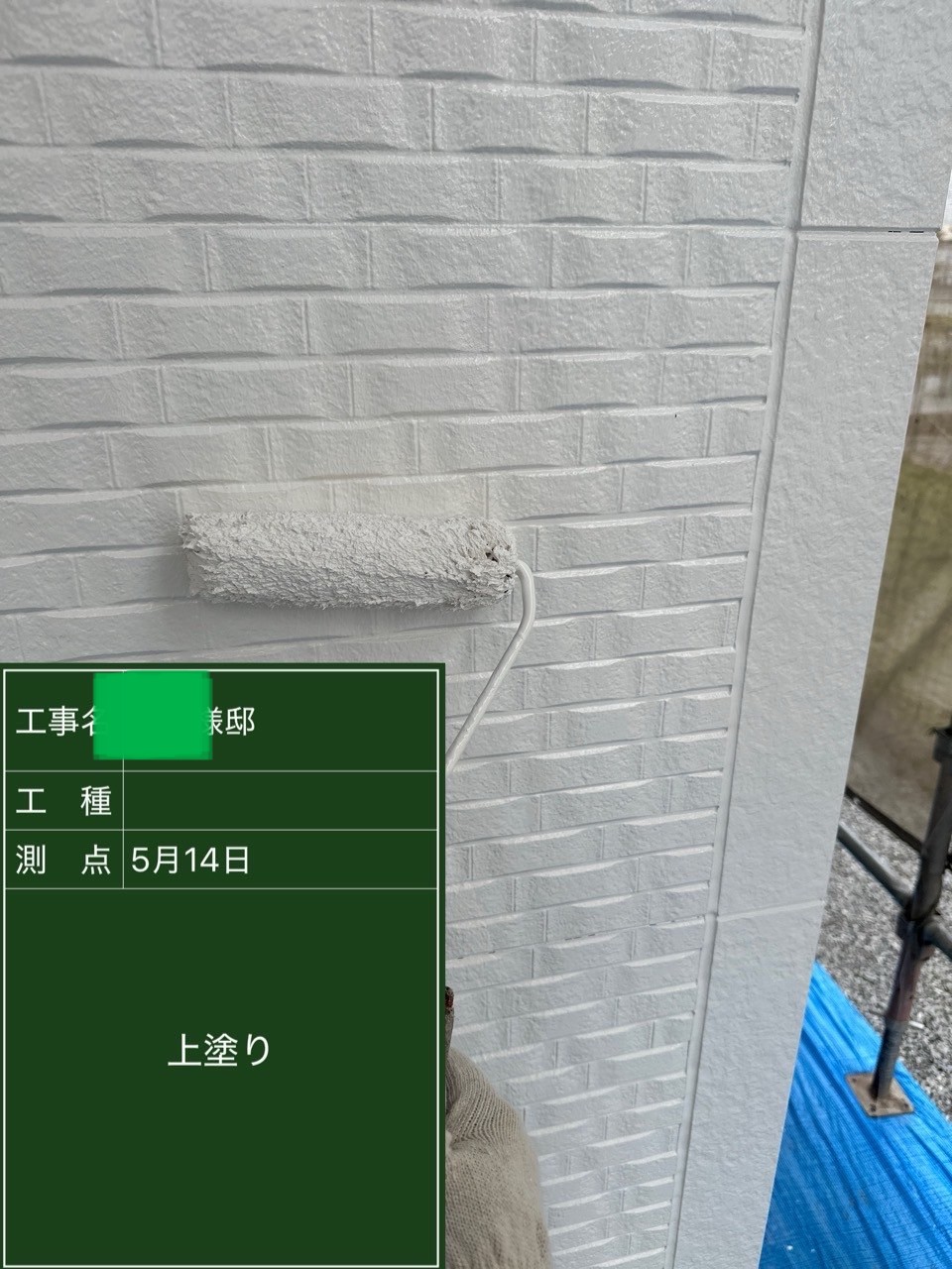 外壁の上塗りを行いました。