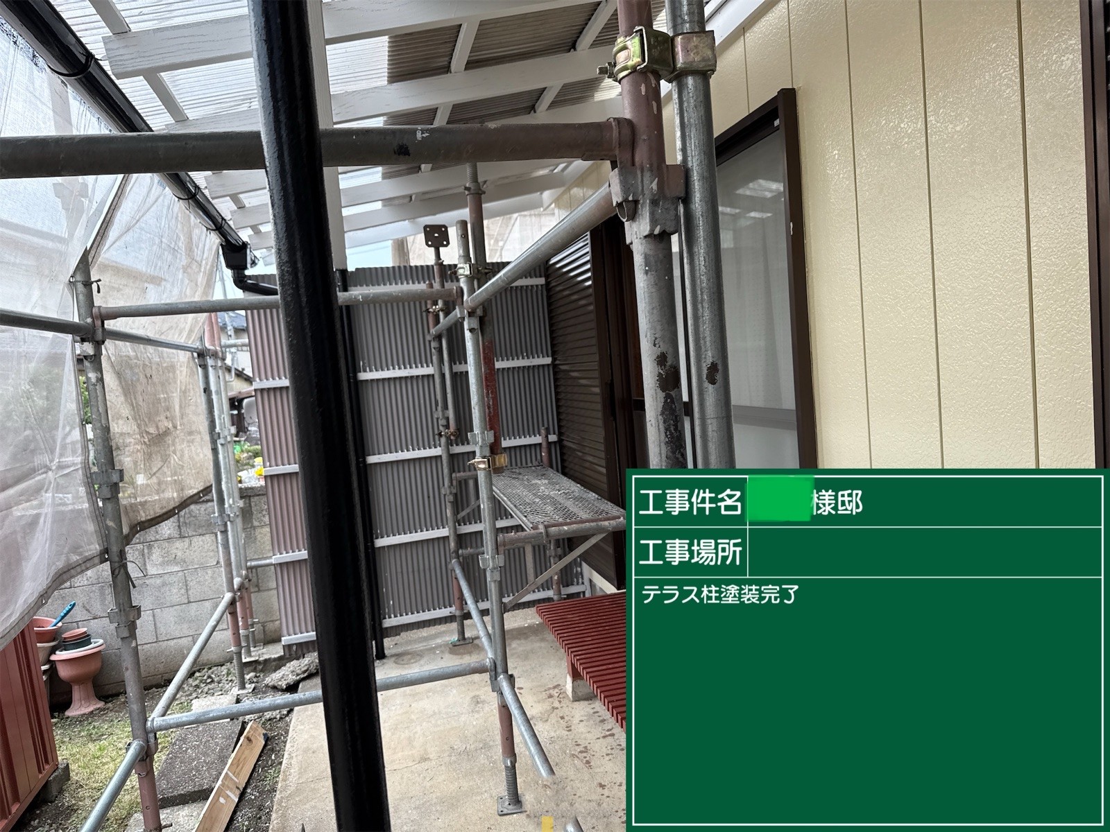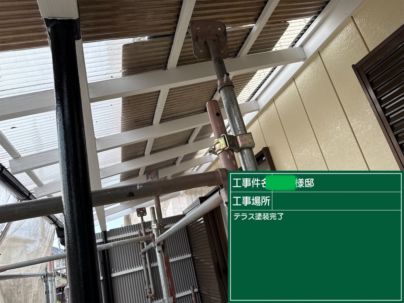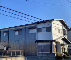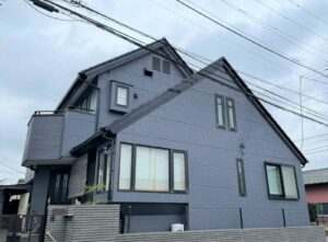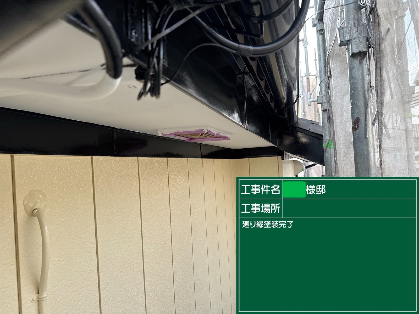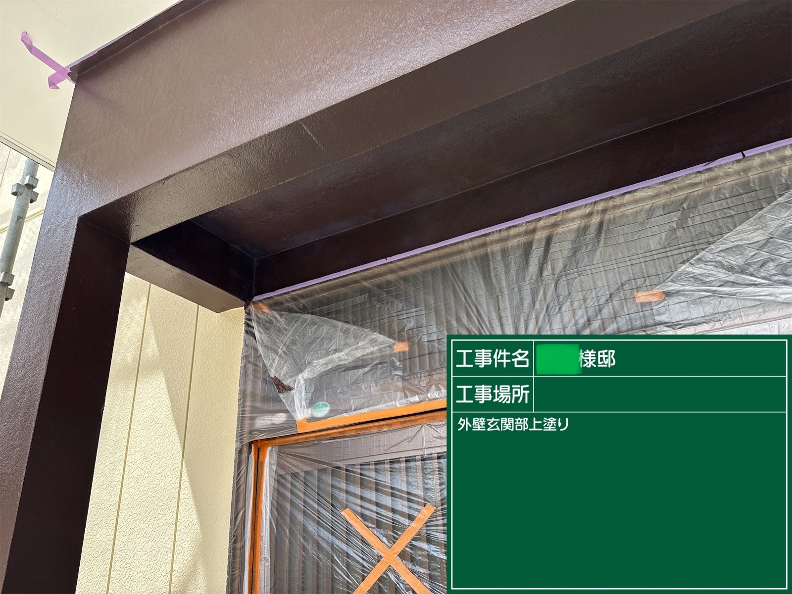 外壁の中塗りを行いました。中塗り➡上塗りと2回に分けて塗装する事で性能を耐久年数の間しっかり持続させるために中塗りの塗装が必須です。
