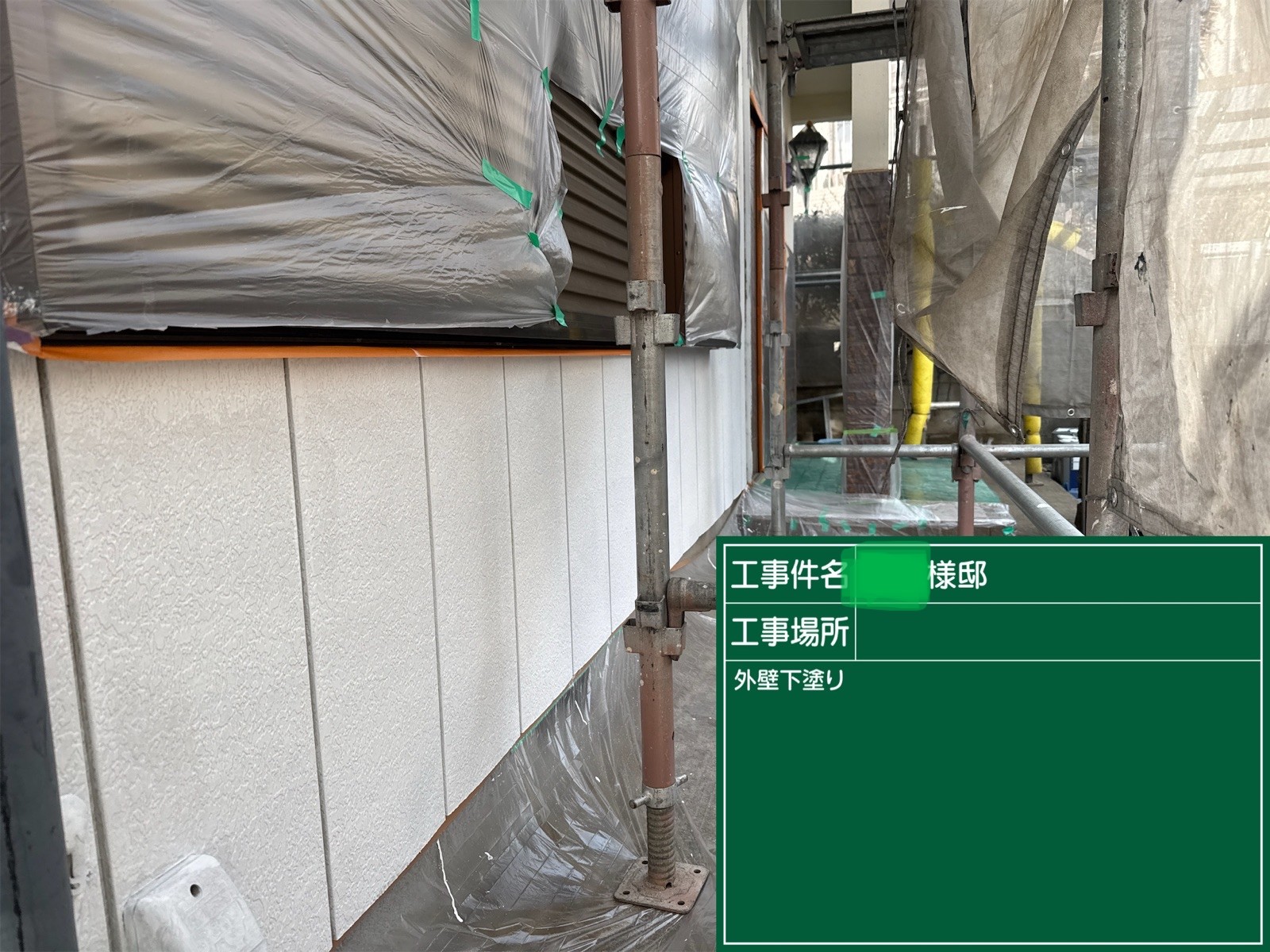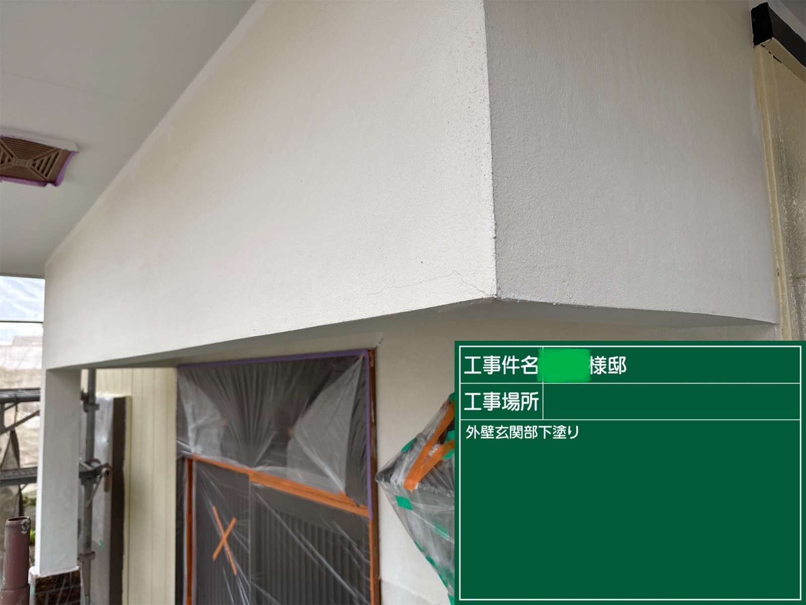 外壁の下塗りを行いました。外壁材と中塗り上塗り塗料との密着力を強め防水性と耐候性に優れた塗膜を作り出します!