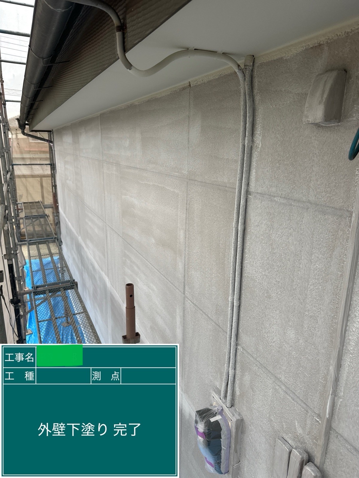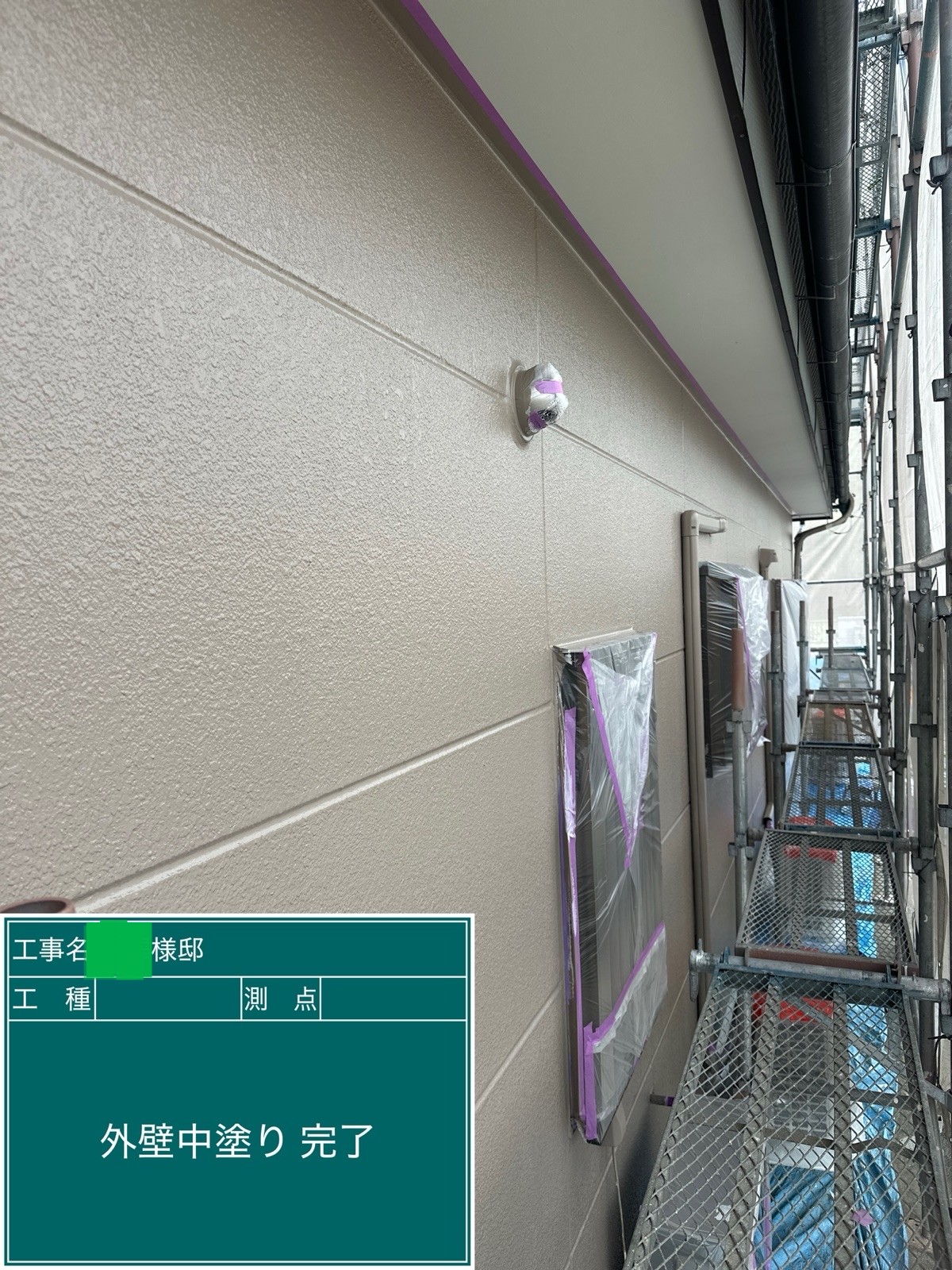 中塗り➡上塗りと2回に分けて塗装する事で性能を耐久年数の間しっかり持続させるために中塗りの塗装が必須です。