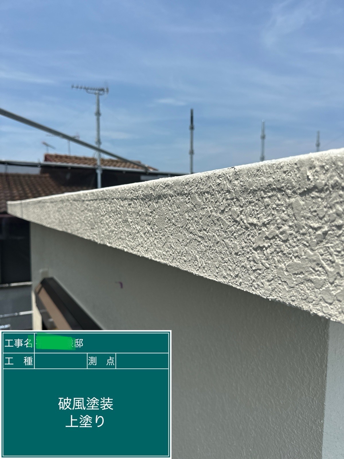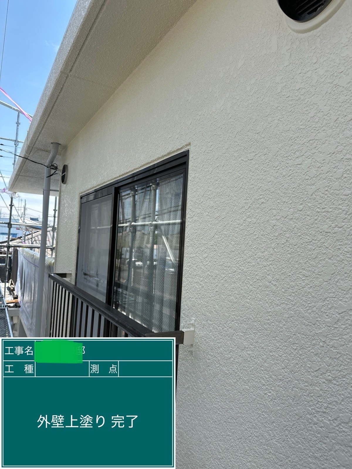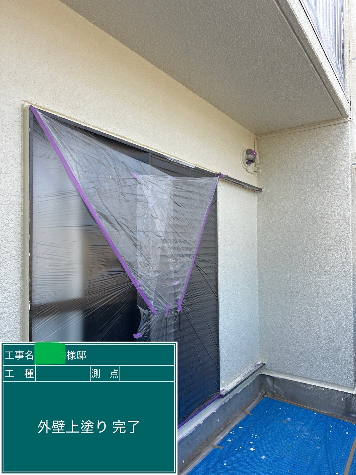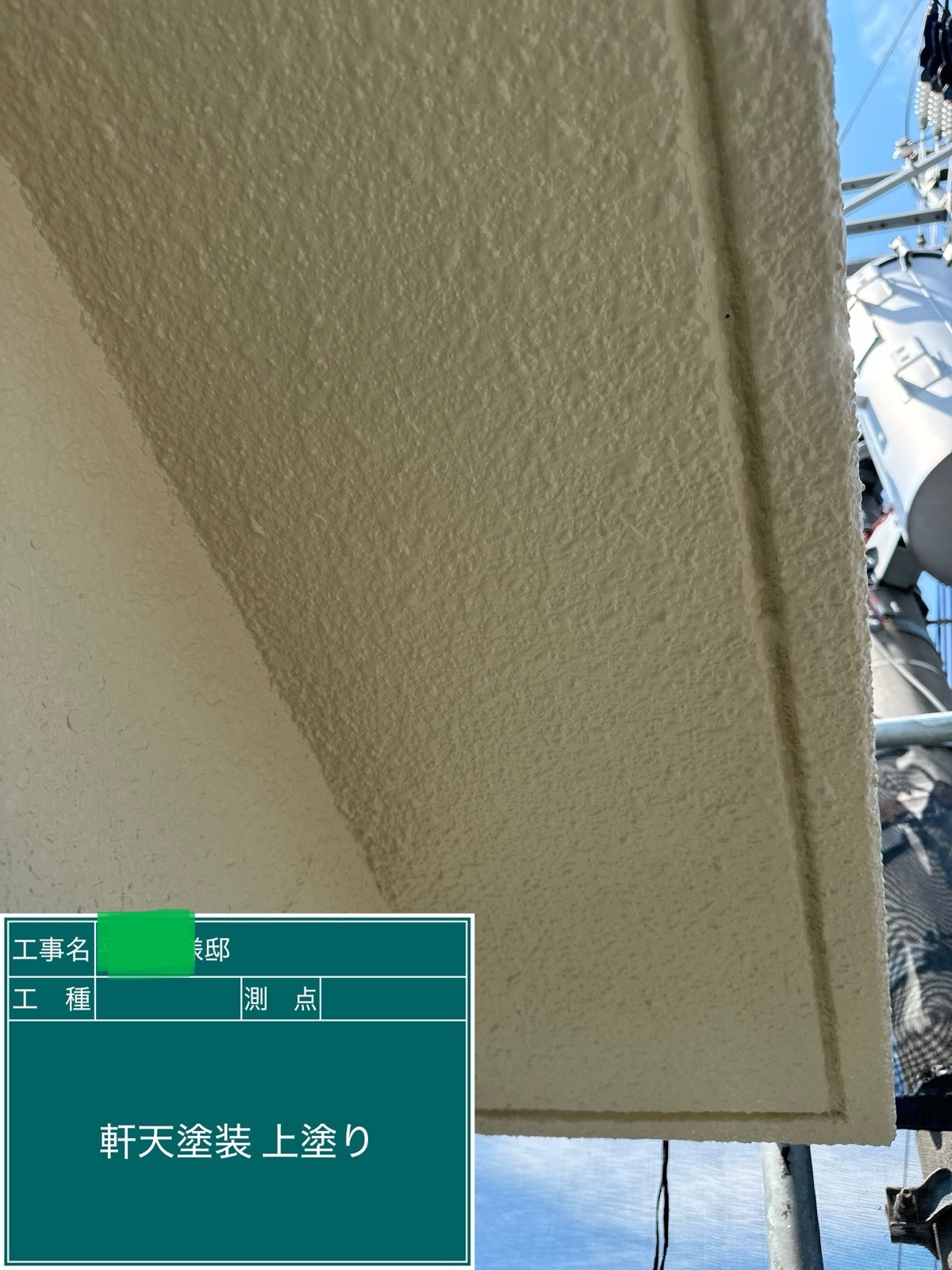 外壁の上塗りを行いました。