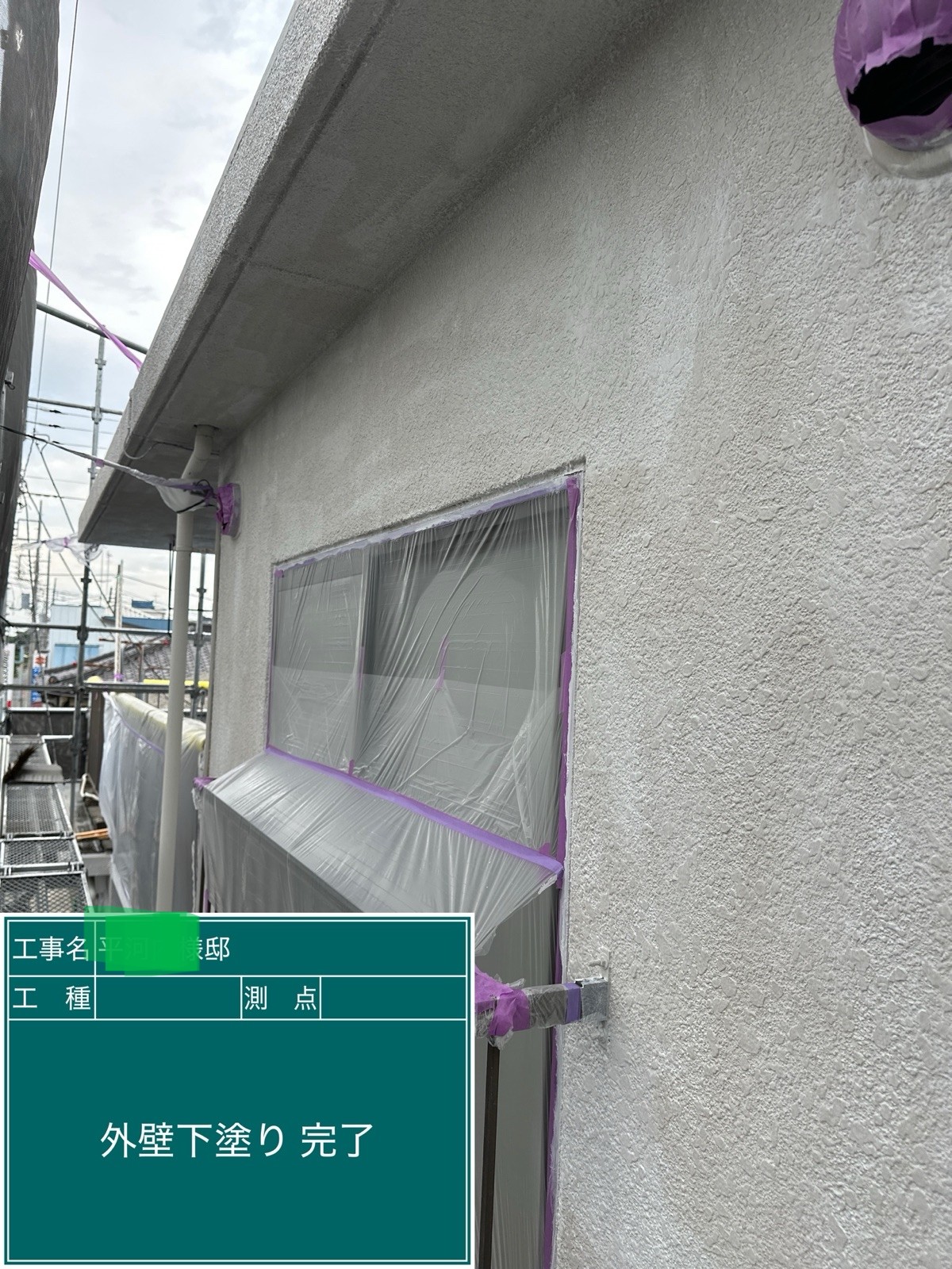 外壁の下塗りを行いました。