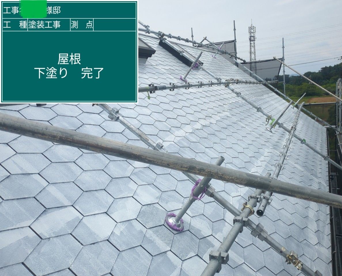 屋根の下塗りを行いました。