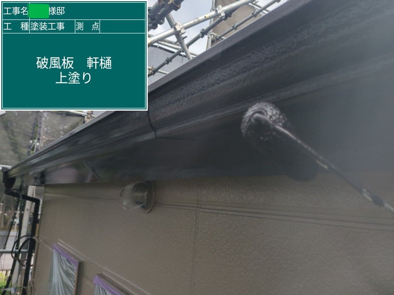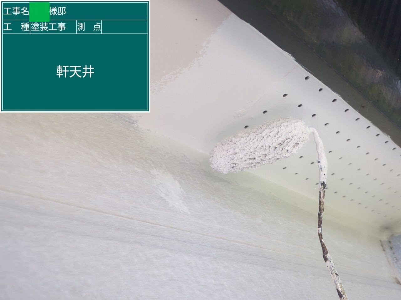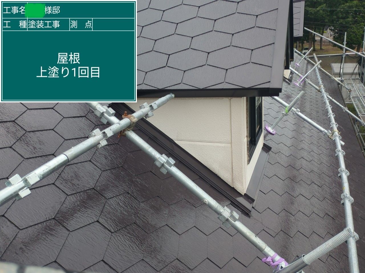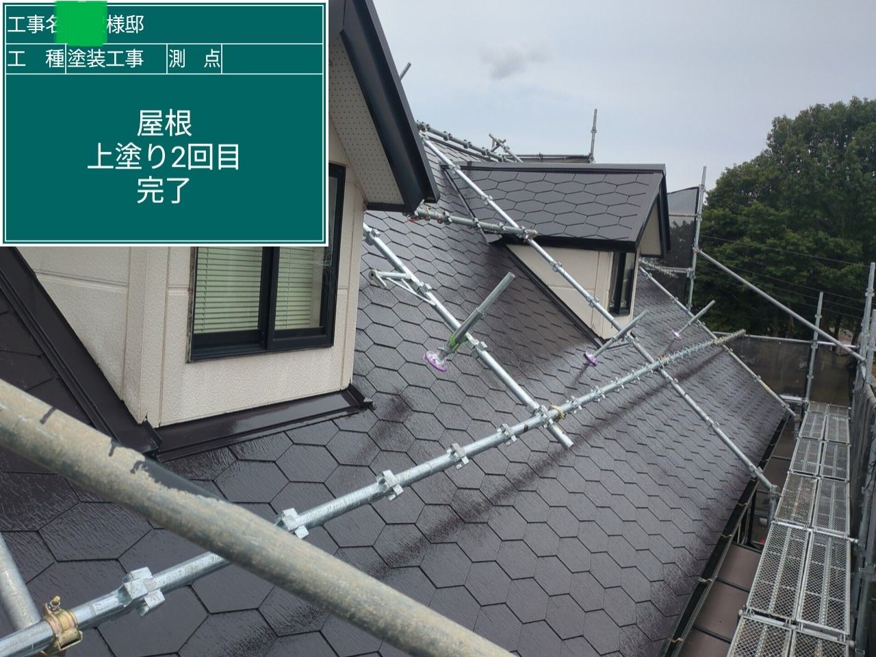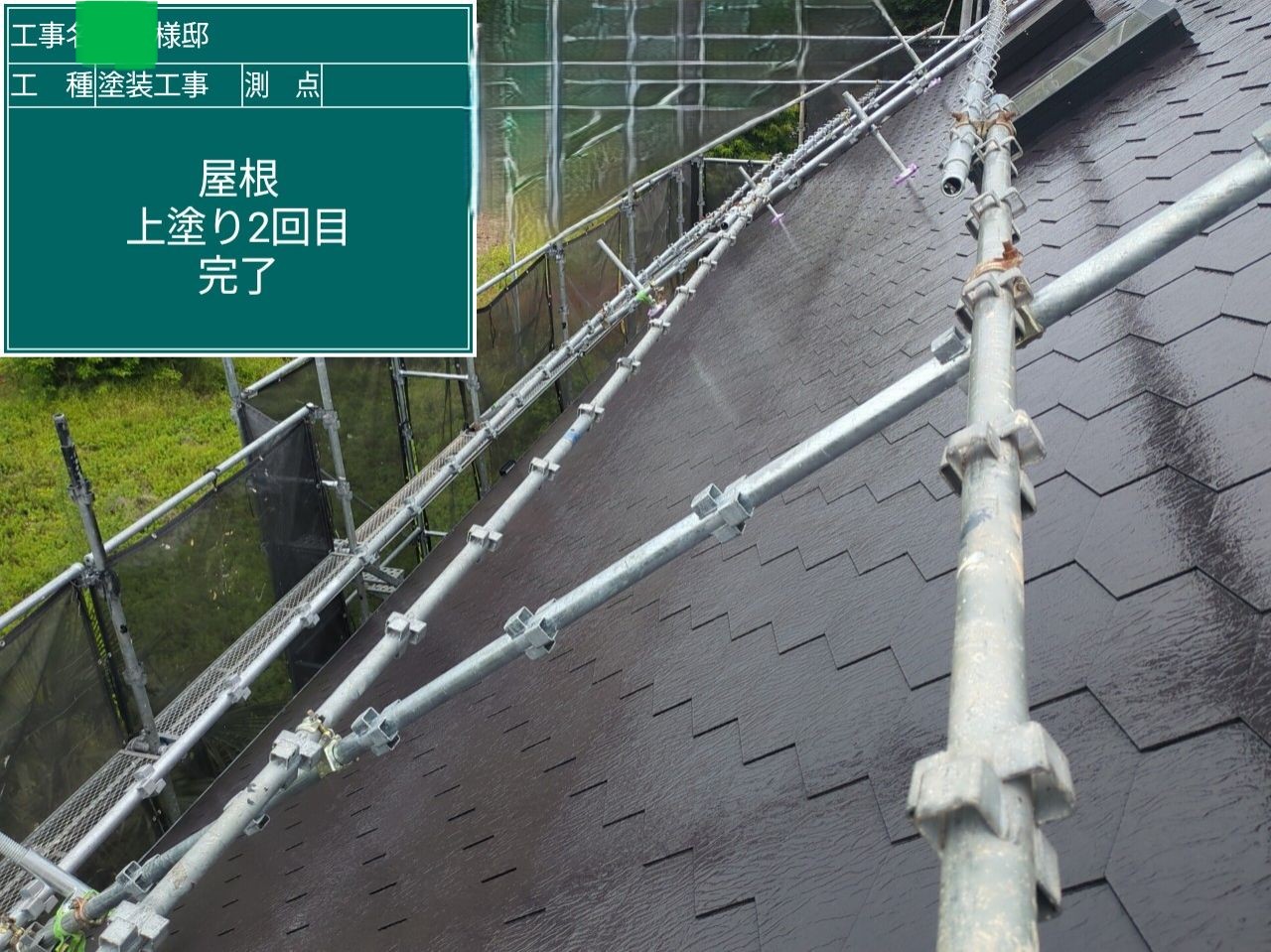 屋根の上塗りを行いました。