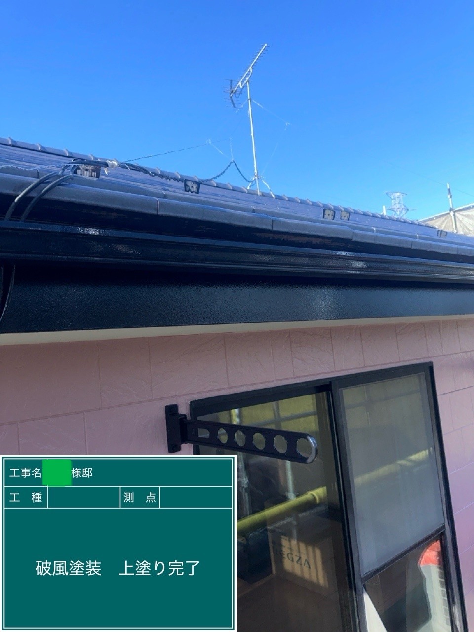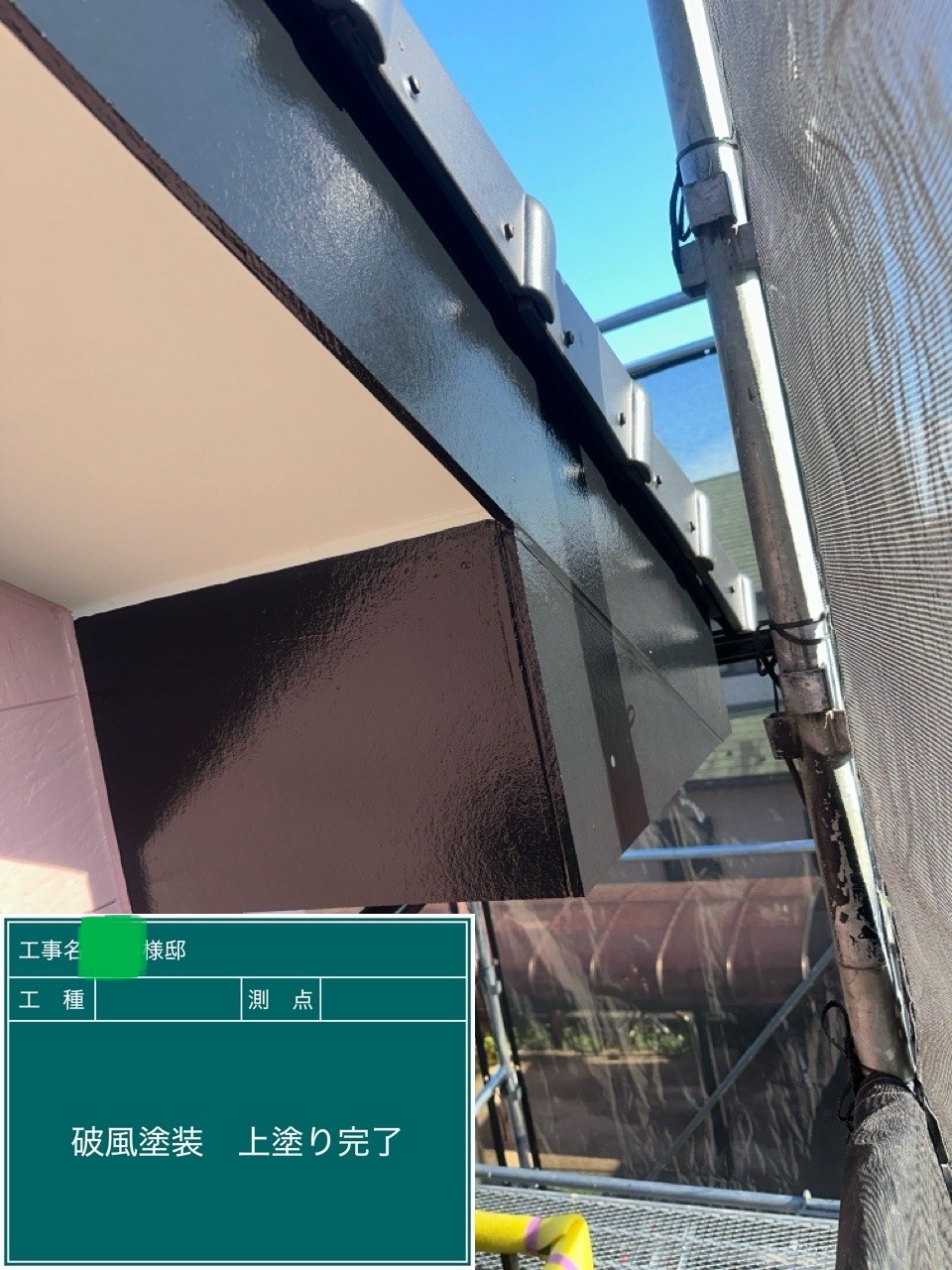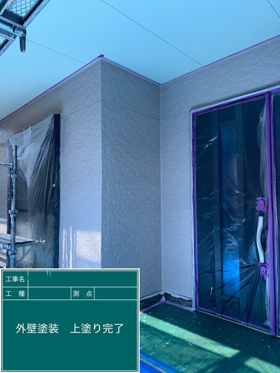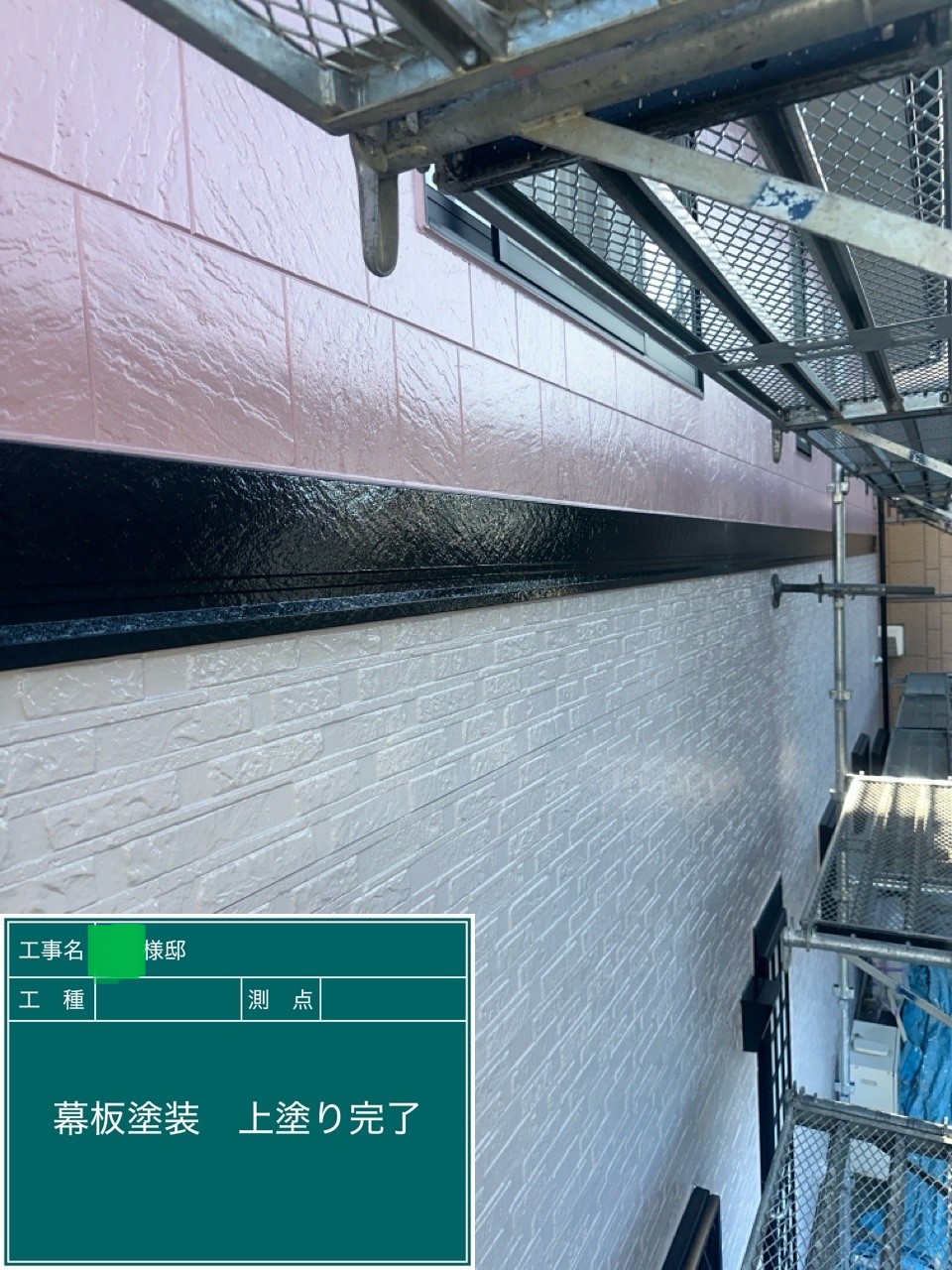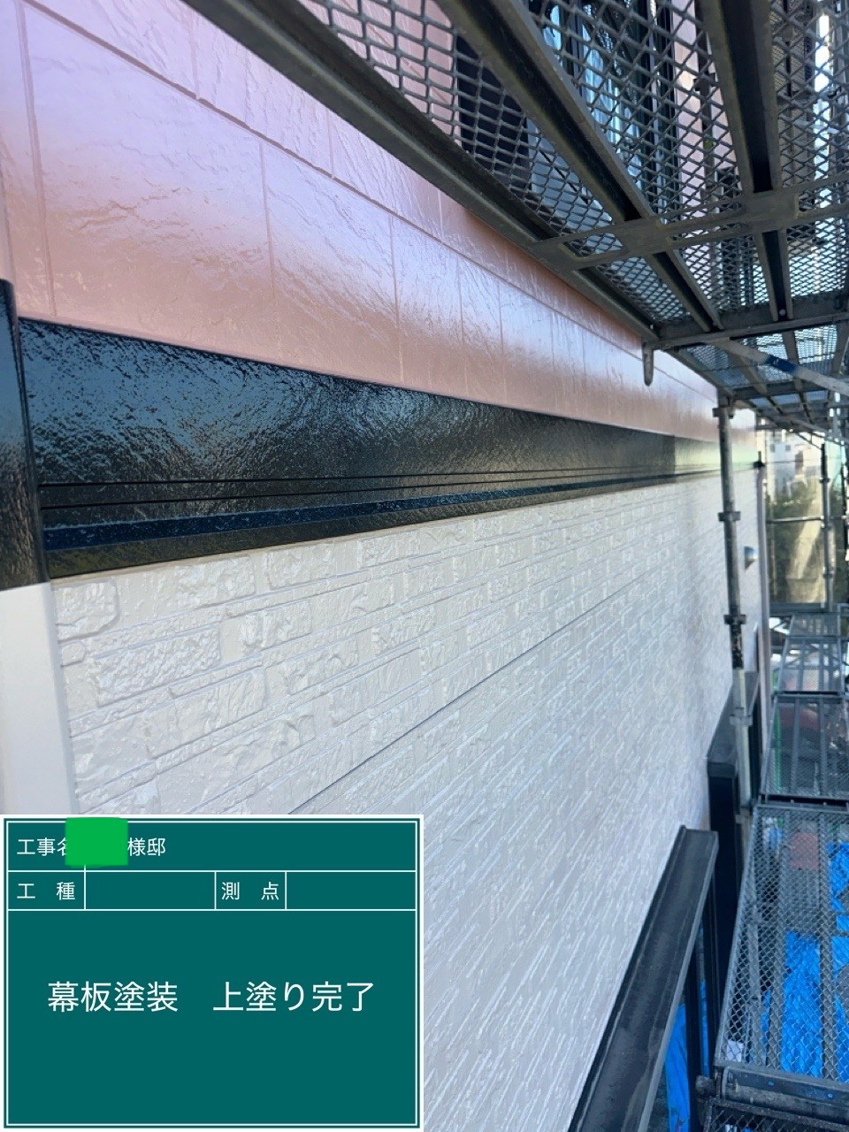 外壁の上塗りを行いました。