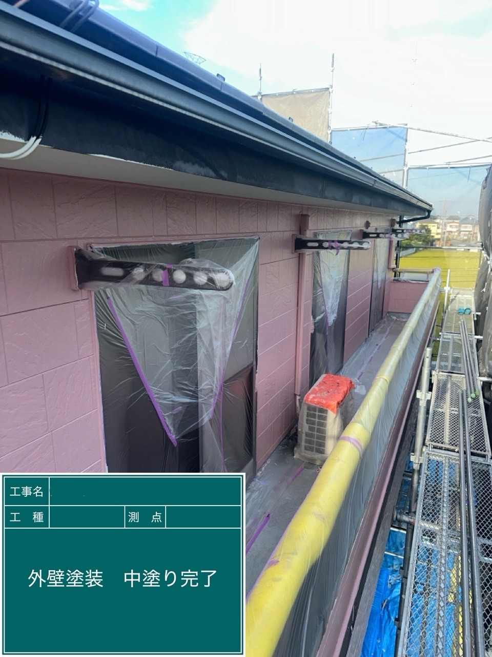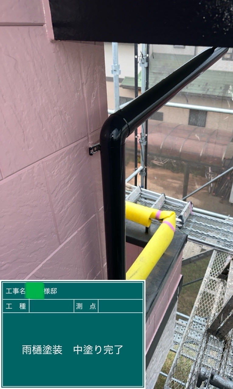 外壁の中塗りを行いました。