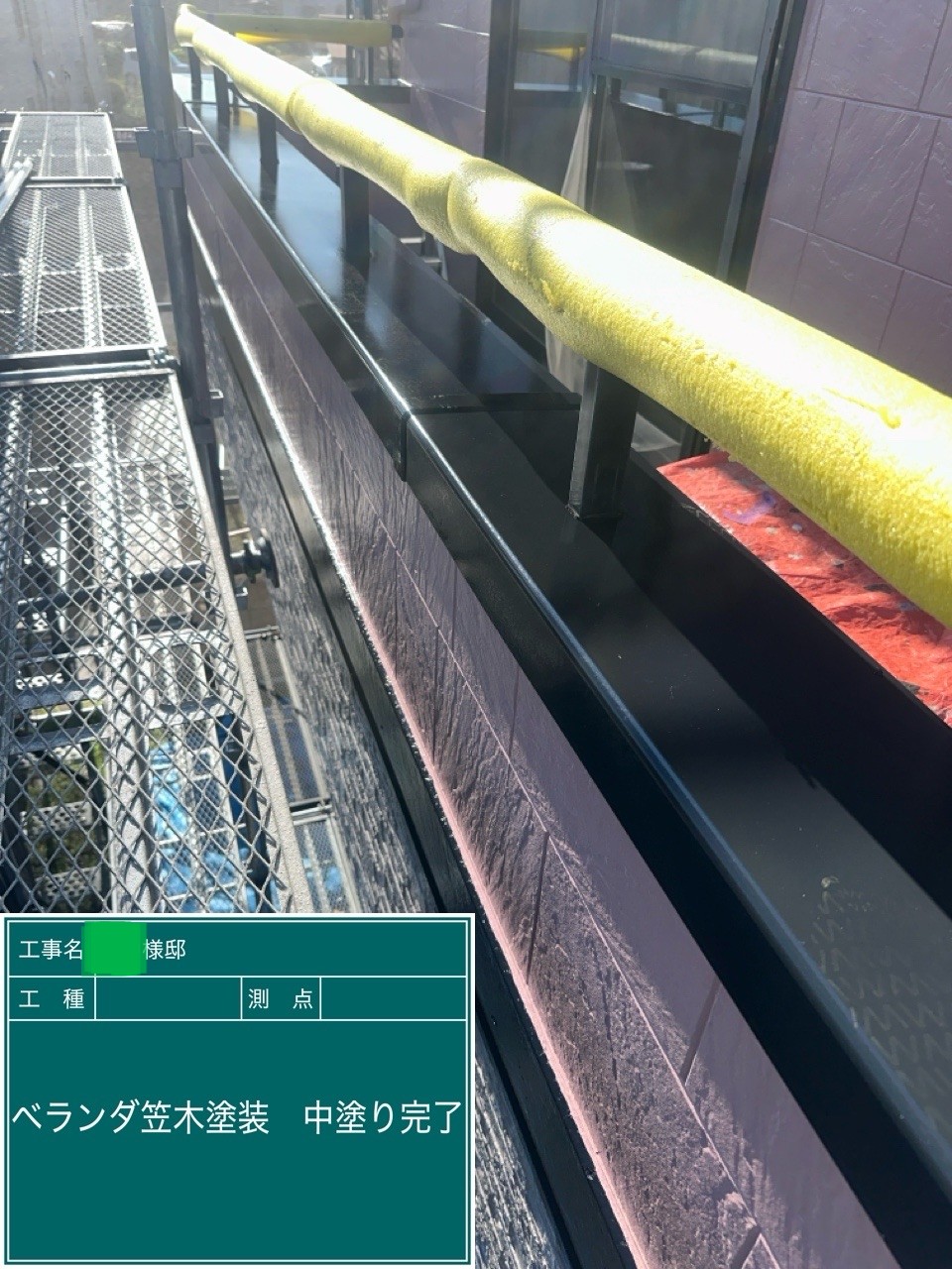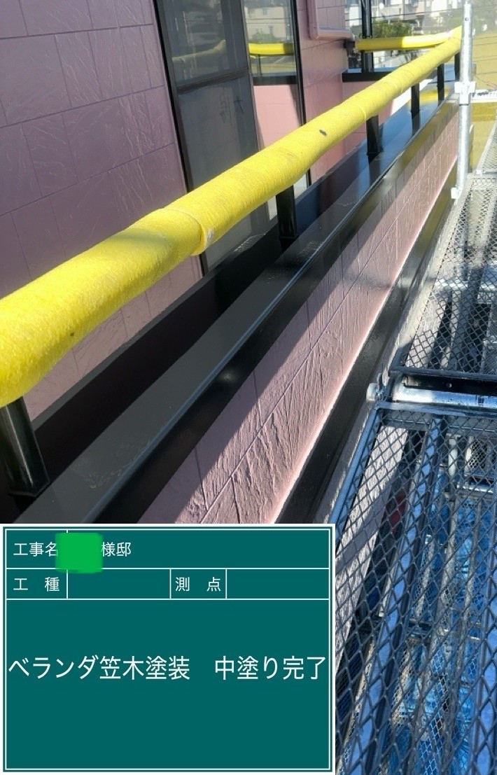 中塗り➡上塗りと2回に分けて塗装する事で性能を耐久年数の間しっかり持続させるために中塗りの塗装が必須です。