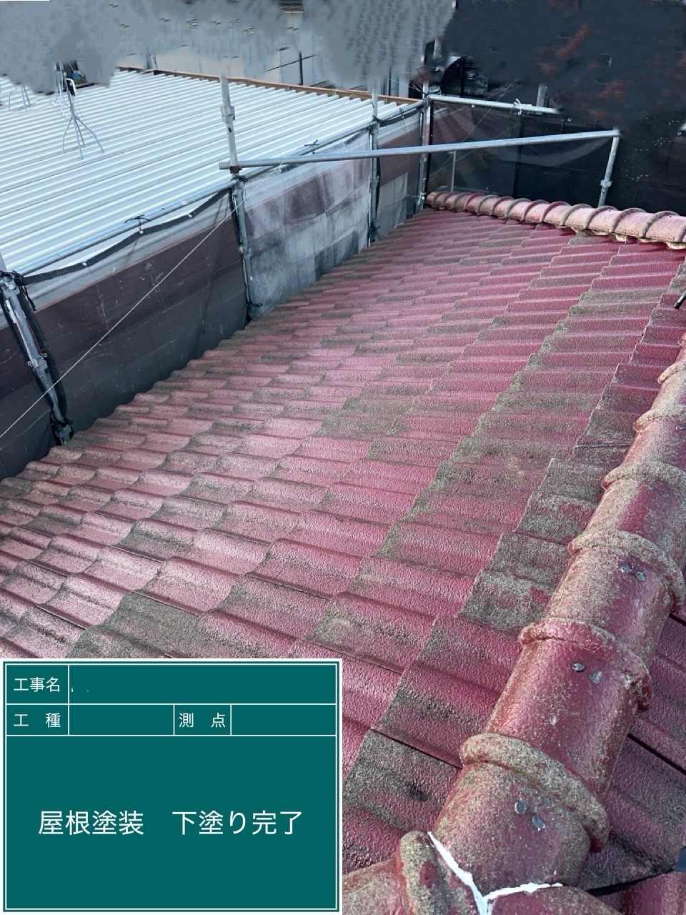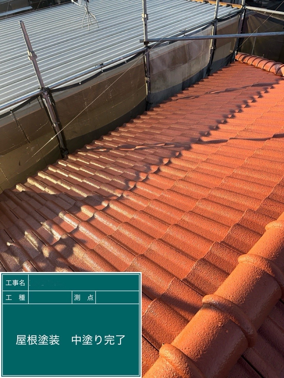 中塗り➡上塗りと2回に分けて塗装する事で性能を耐久年数の間しっかり持続させるために中塗りの塗装が必須です。