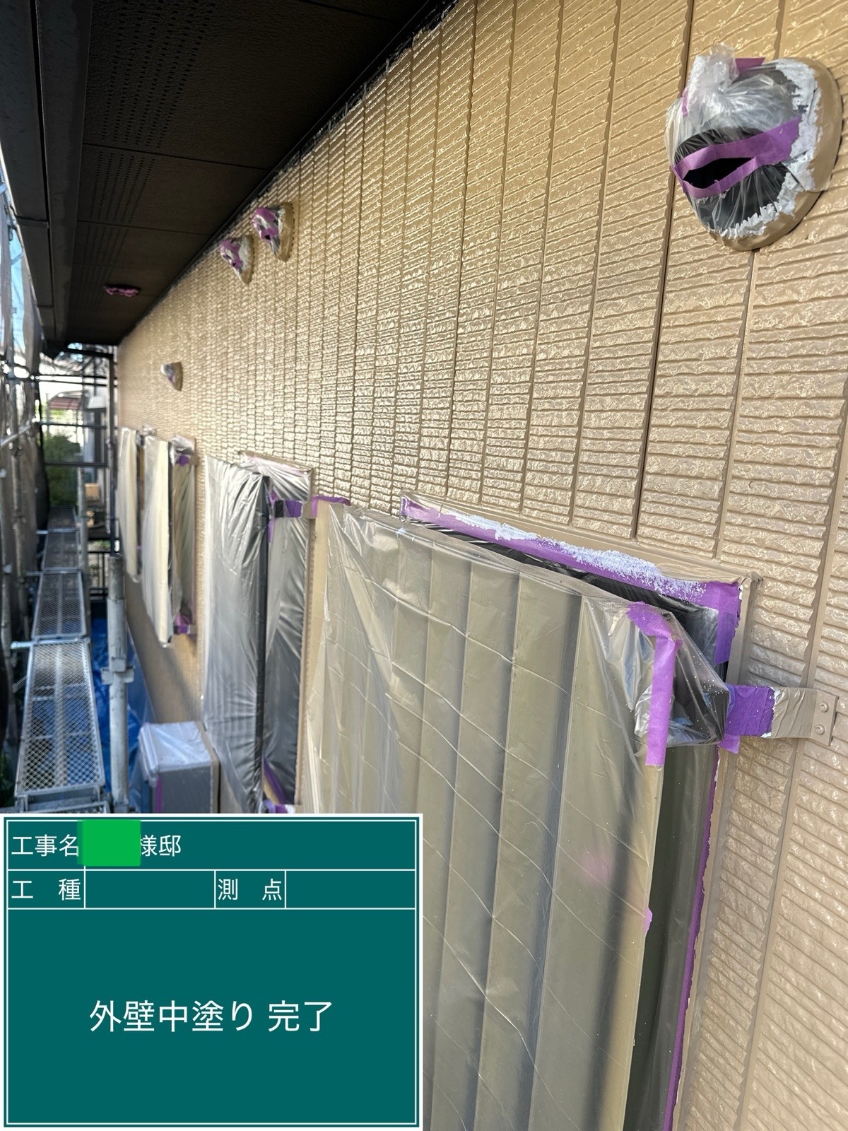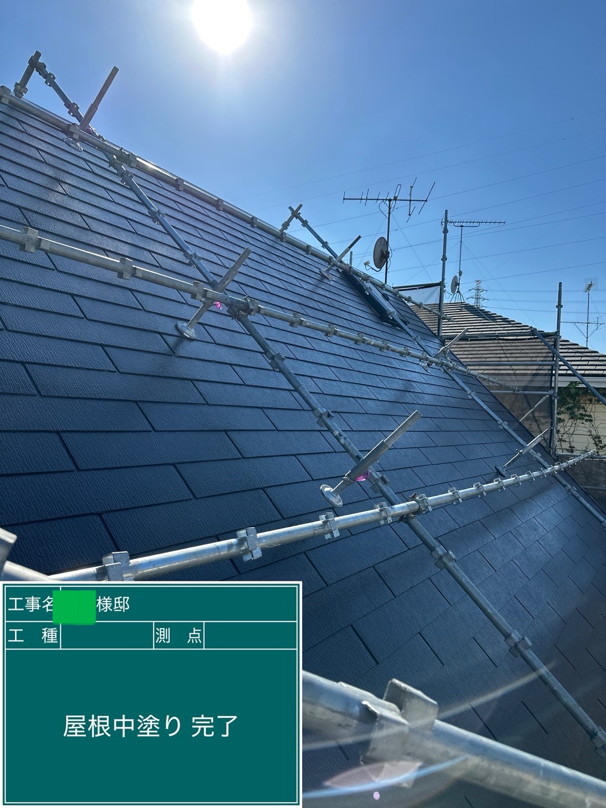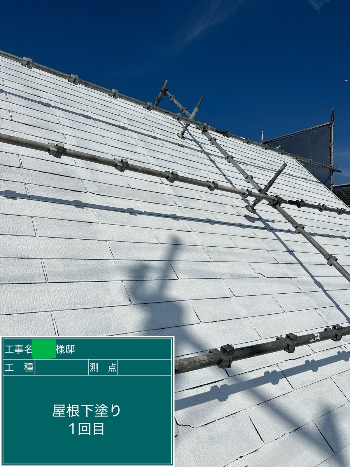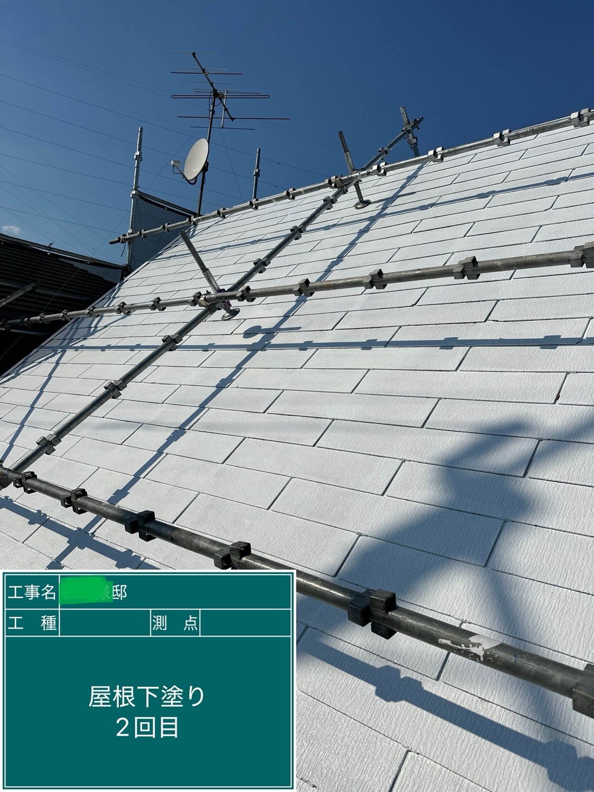 中塗り➡上塗りと2回に分けて塗装する事で性能を耐久年数の間しっかり持続させるために中塗りの塗装が必須です。