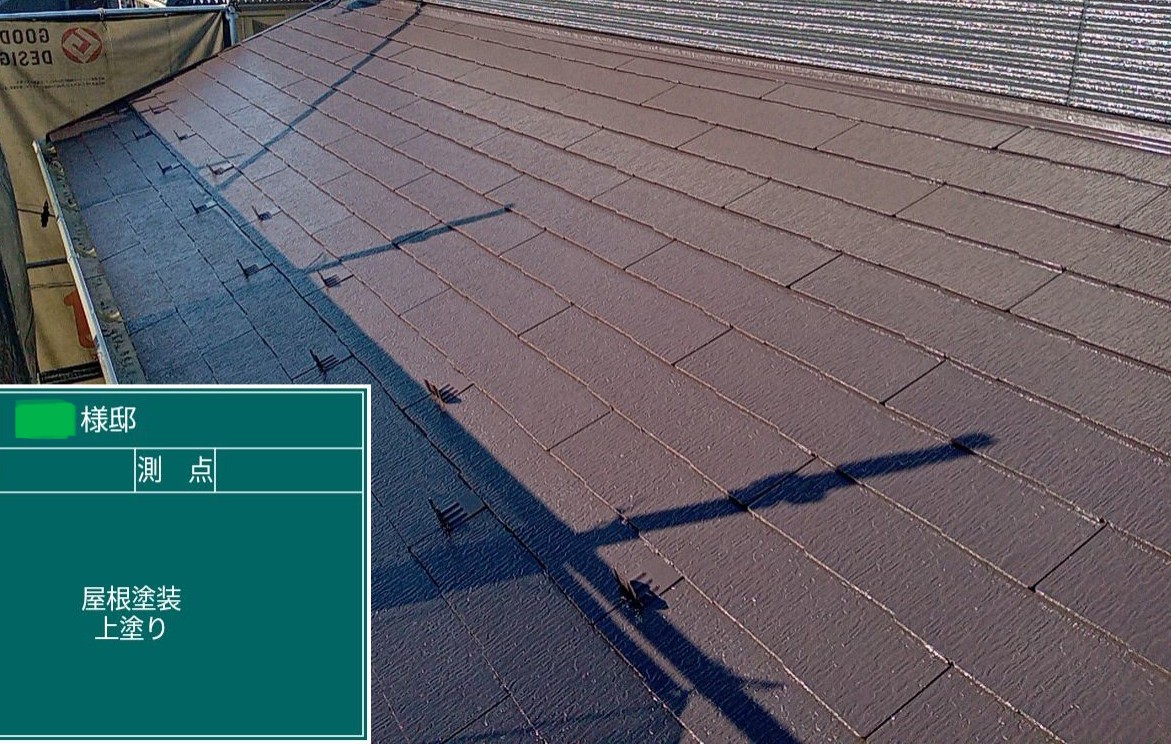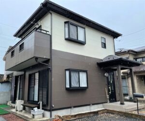 | 使用塗料 | 屋根/日本ペイント/グランセラベスト2液ファイン遮熱 外壁/アステックペイント/超低汚染プラチナリファイン2000Si-IR ベース8079(チャコール)、アクセント8077(ヤララブラウン) |