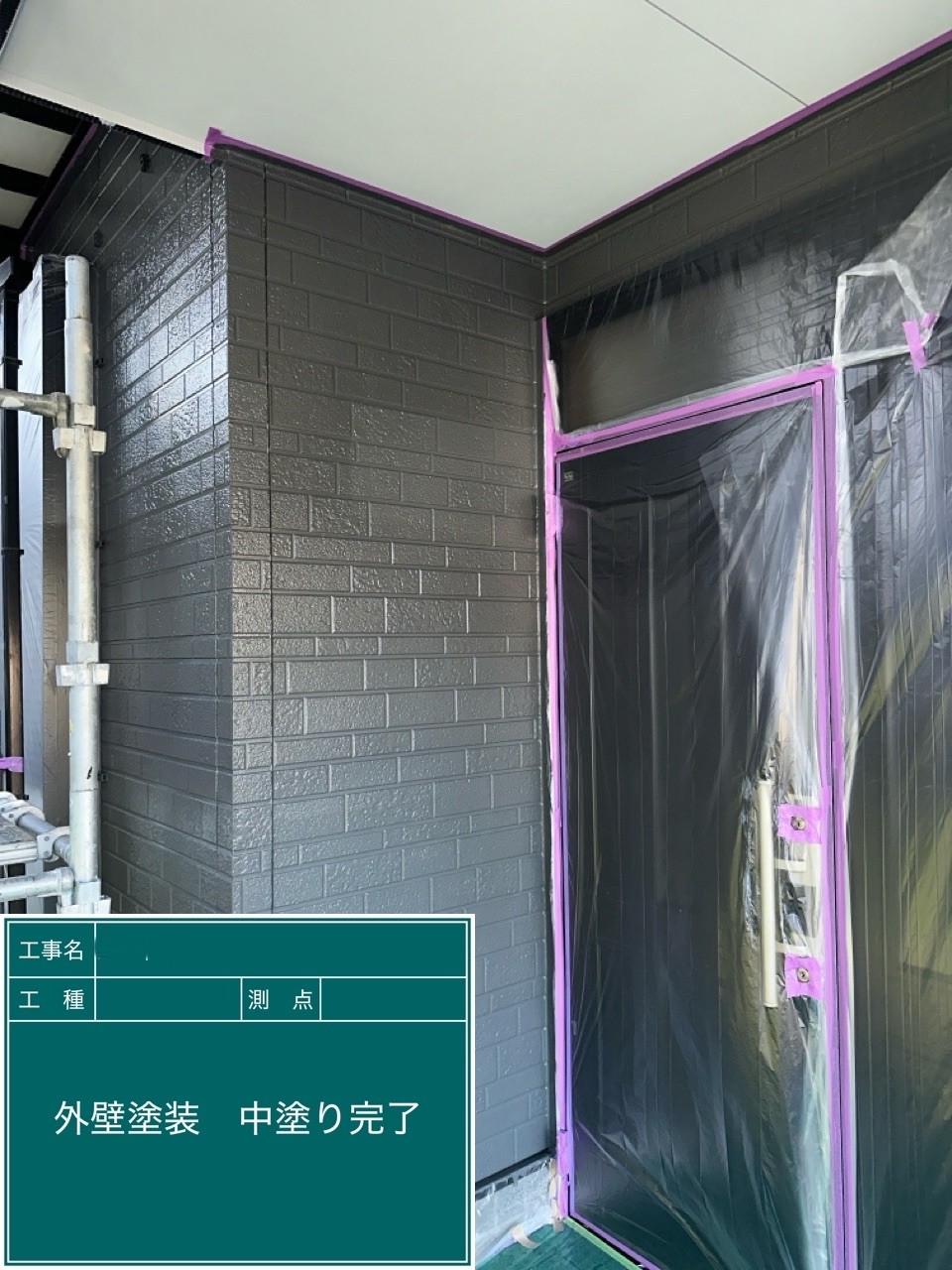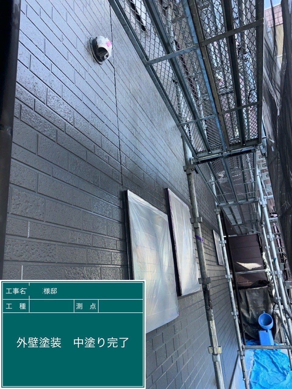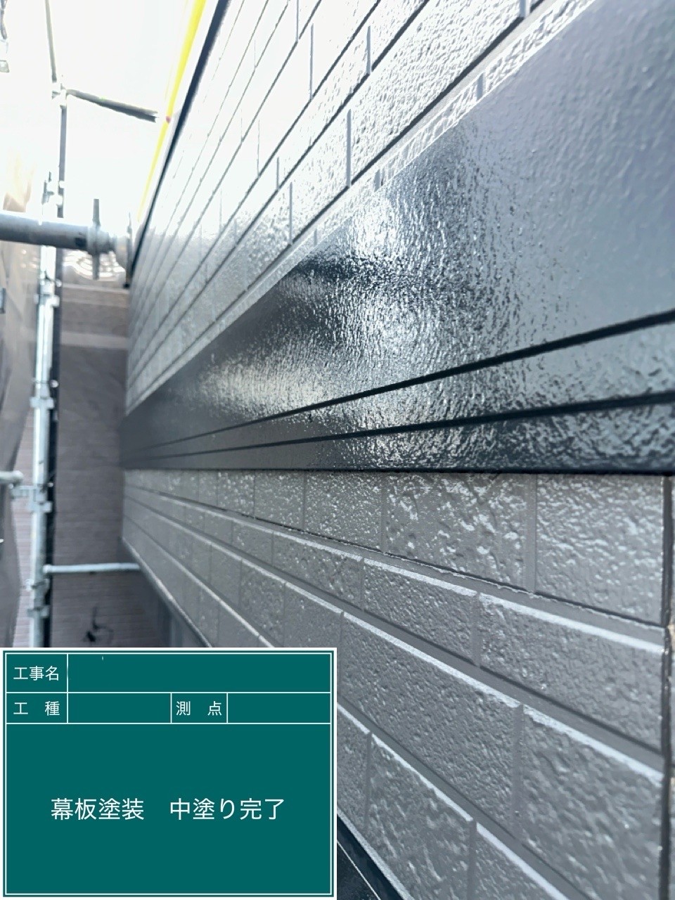 中塗り➡上塗りと2回に分けて塗装する事で性能を耐久年数の間しっかり持続させるために中塗りの塗装が必須です。