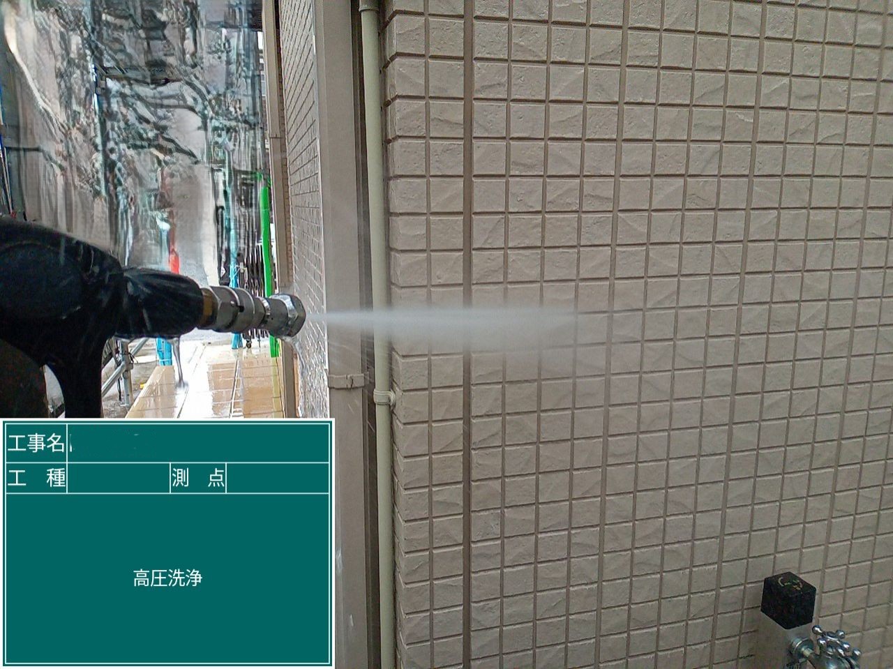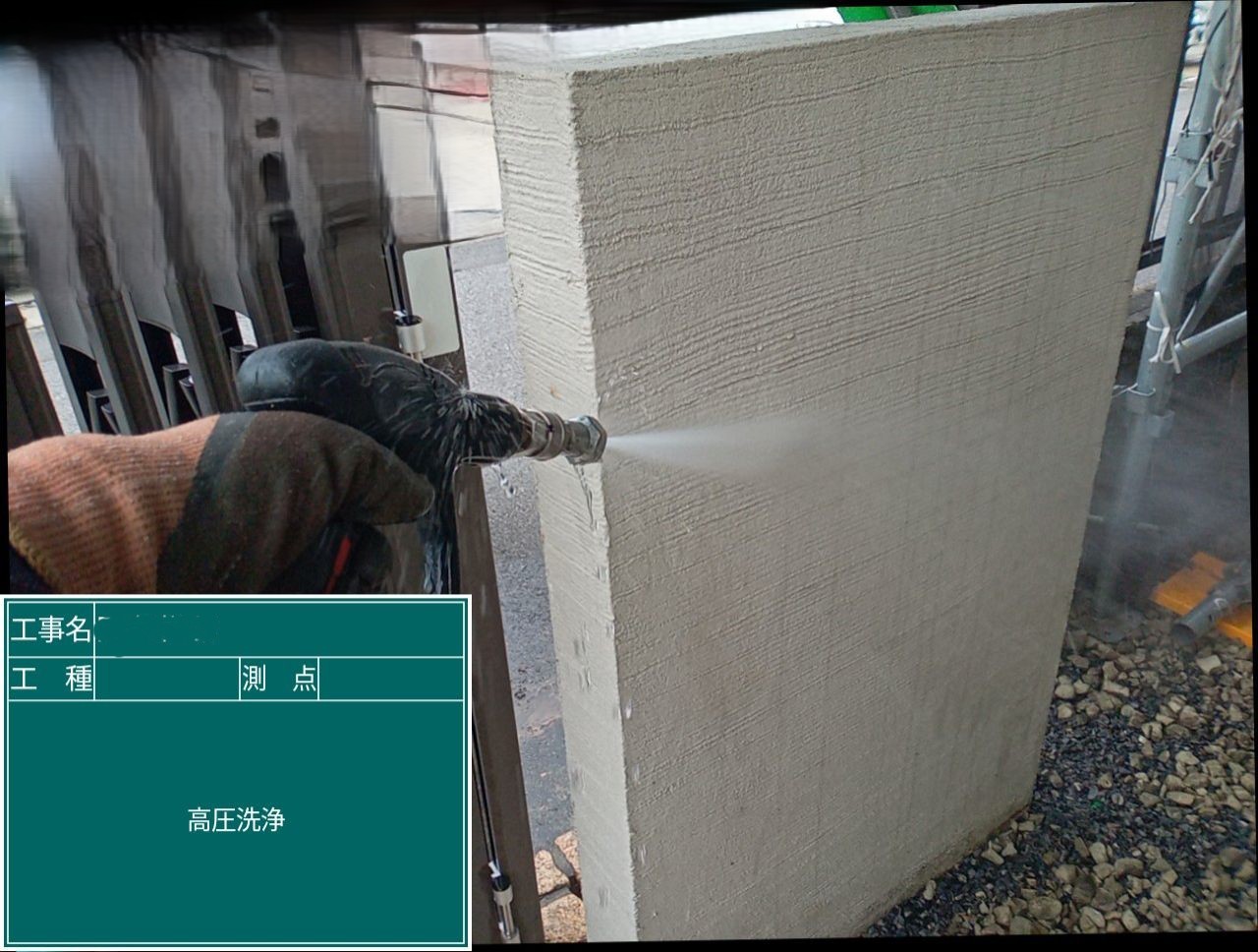 外壁高圧洗浄 外壁に付着した汚れなどを洗い流します。