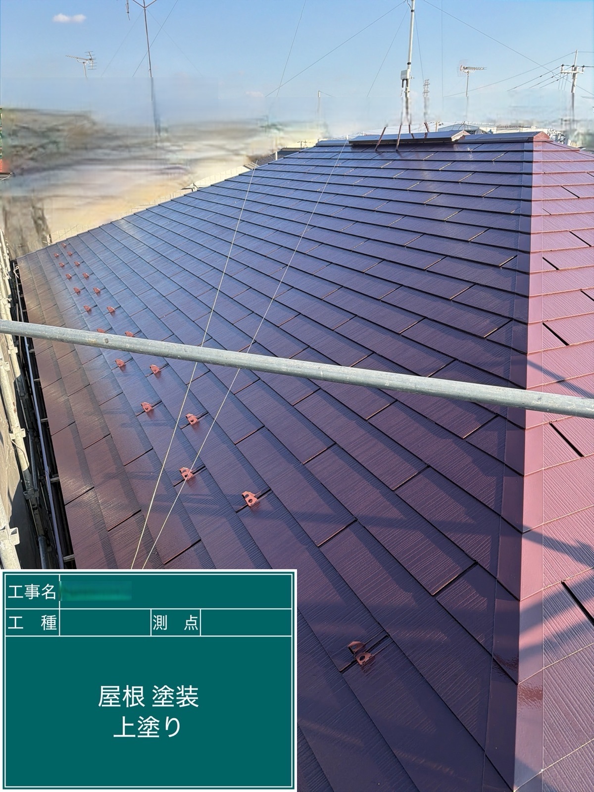| 使用塗料 | 屋根/日本ペイント/グランセラベスト2液ファイン遮熱 ニューワイン 外壁/アステックペイント/超低汚染プラチナリファイン2000MF-IR 8084(メリーノ) |