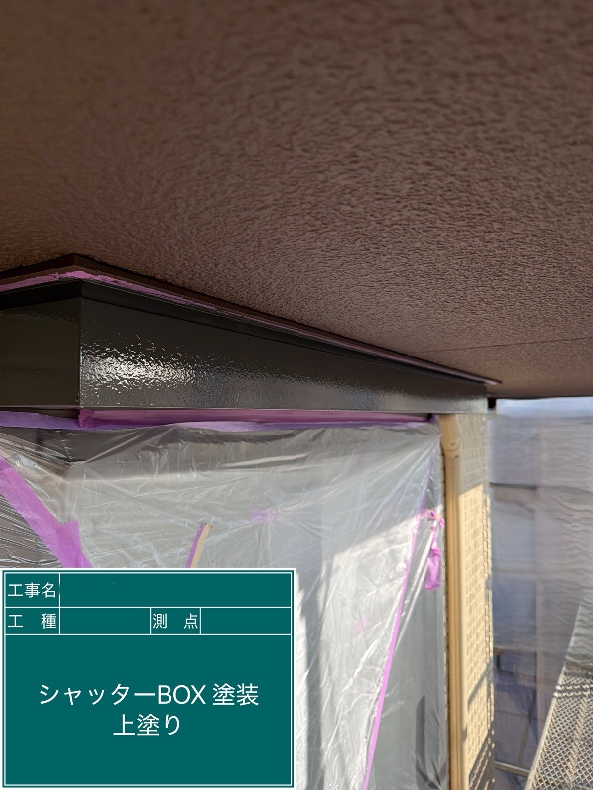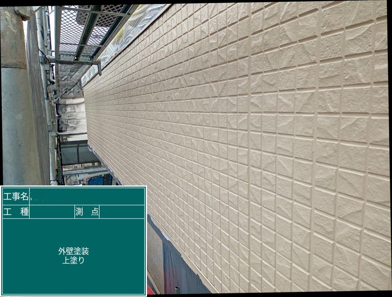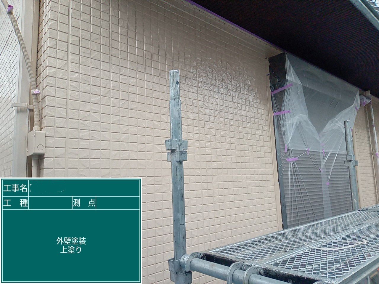外壁の上塗りを行いました。