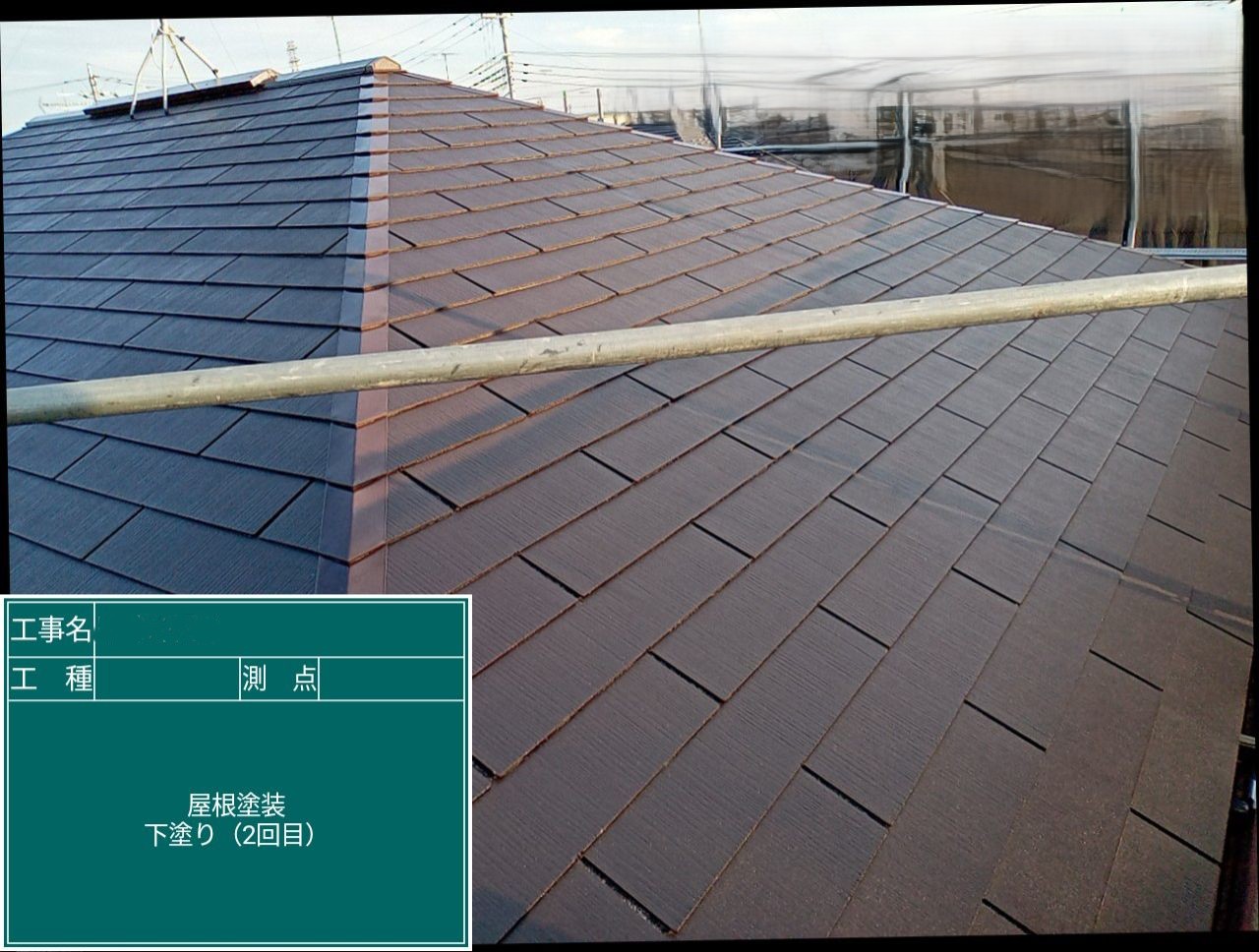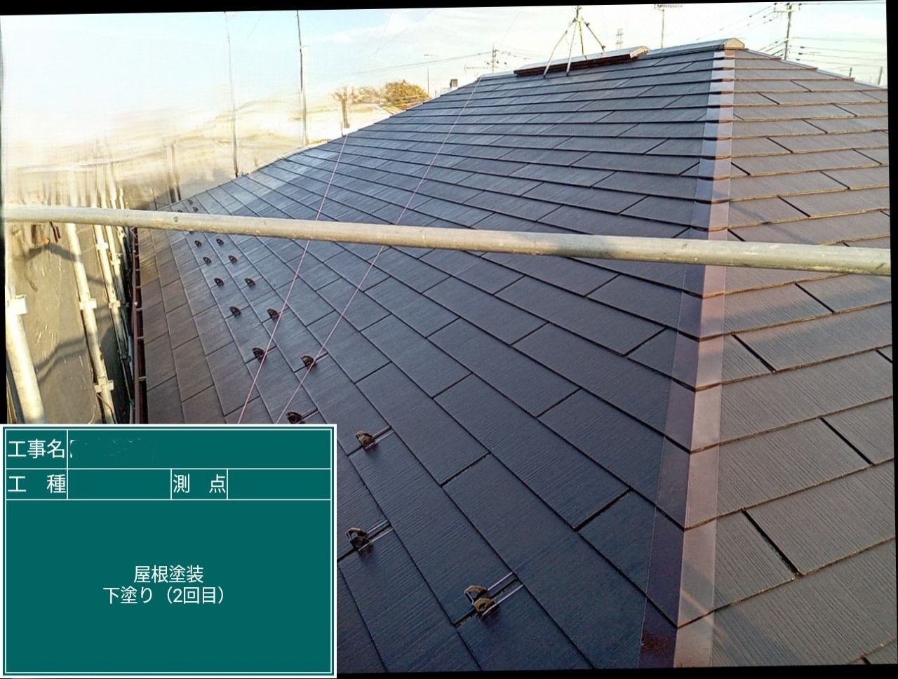 中塗り➡上塗りと2回に分けて塗装する事で性能を耐久年数の間しっかり持続させるために中塗りの塗装が必須です。