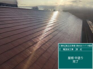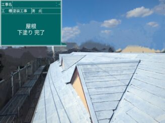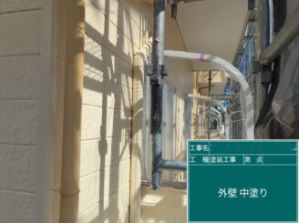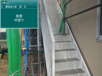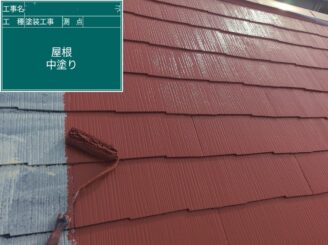 中塗り➡上塗りと2回に分けて塗装する事で性能を耐久年数の間しっかり持続させるために中塗りの塗装が必須です。