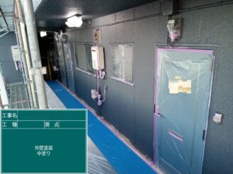 中塗り➡上塗りと2回に分けて塗装する事で性能を耐久年数の間しっかり持続させるために中塗りの塗装が必須です。