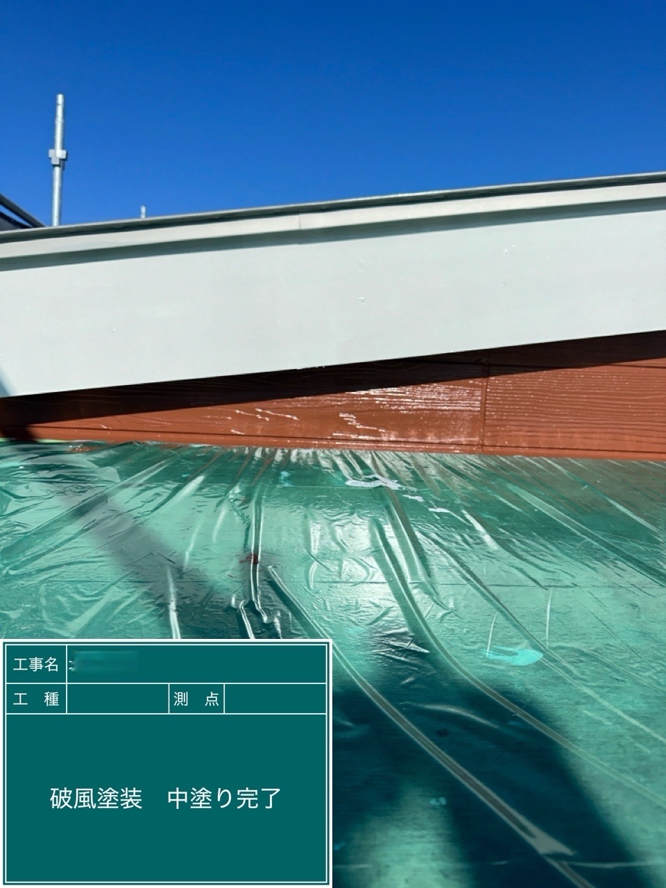 中塗り➡上塗りと2回に分けて塗装する事で性能を耐久年数の間しっかり持続させるために中塗りの塗装が必須です。