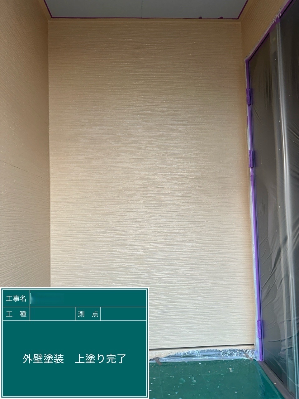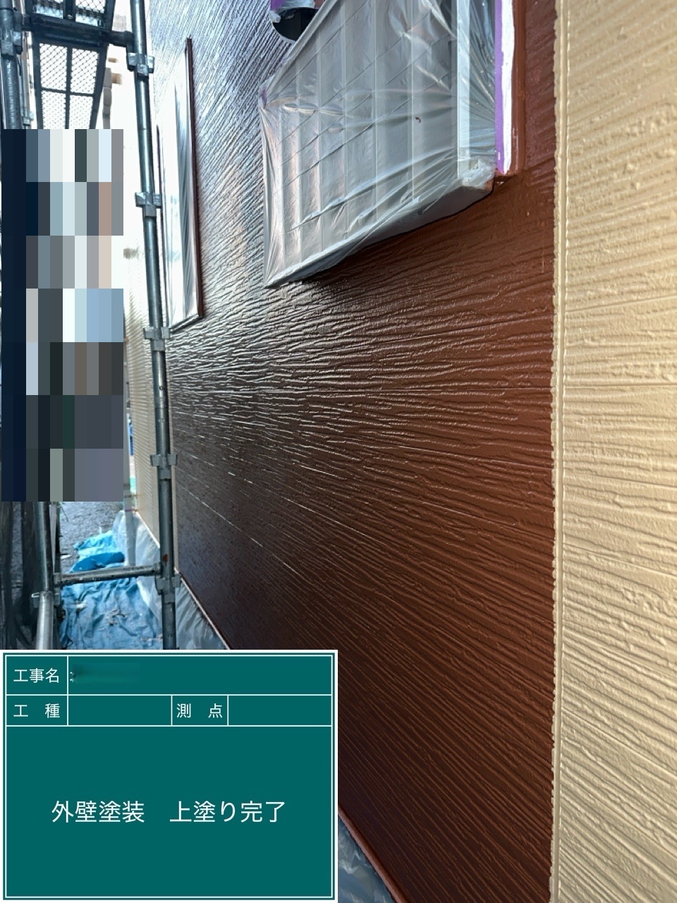外壁の上塗りを行いました。