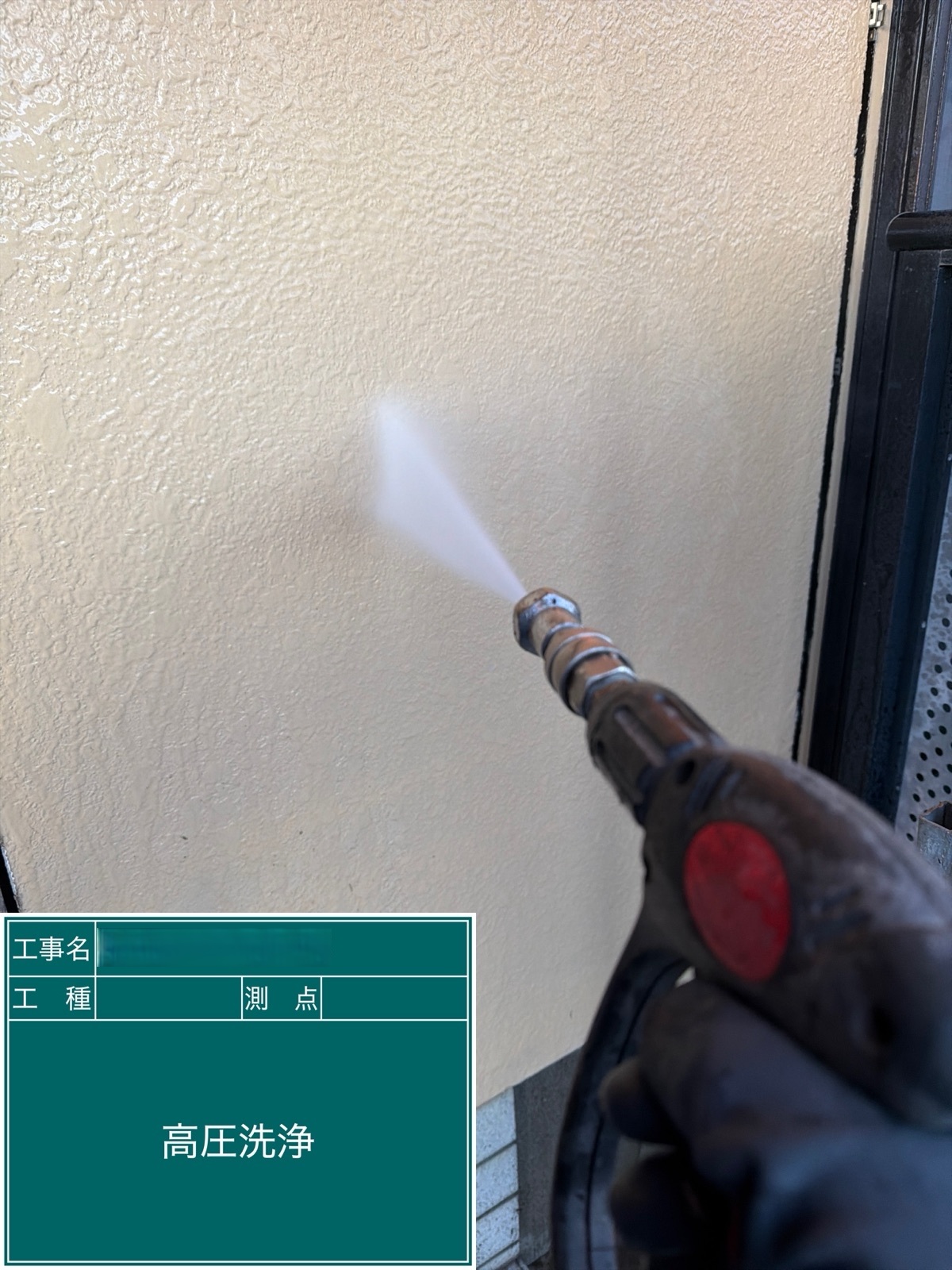 外壁高圧洗浄 外壁に付着した汚れなどを洗い流します。