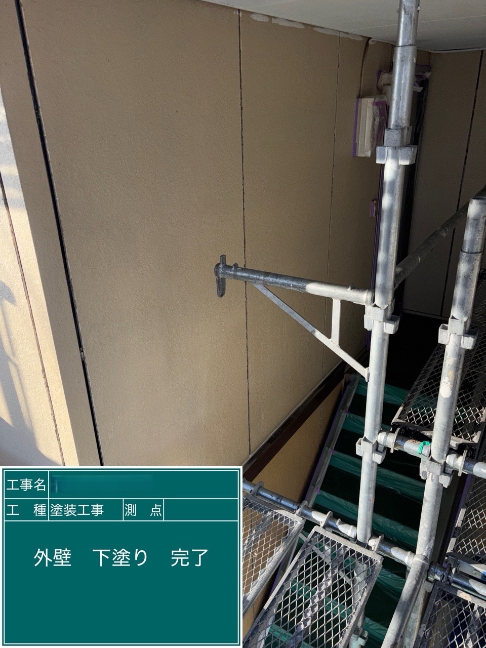 中塗り➡上塗りと2回に分けて塗装する事で性能を耐久年数の間しっかり持続させるために中塗りの塗装が必須です。