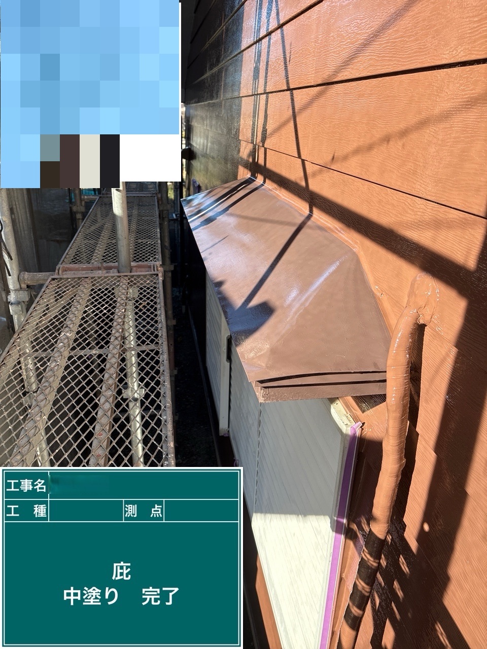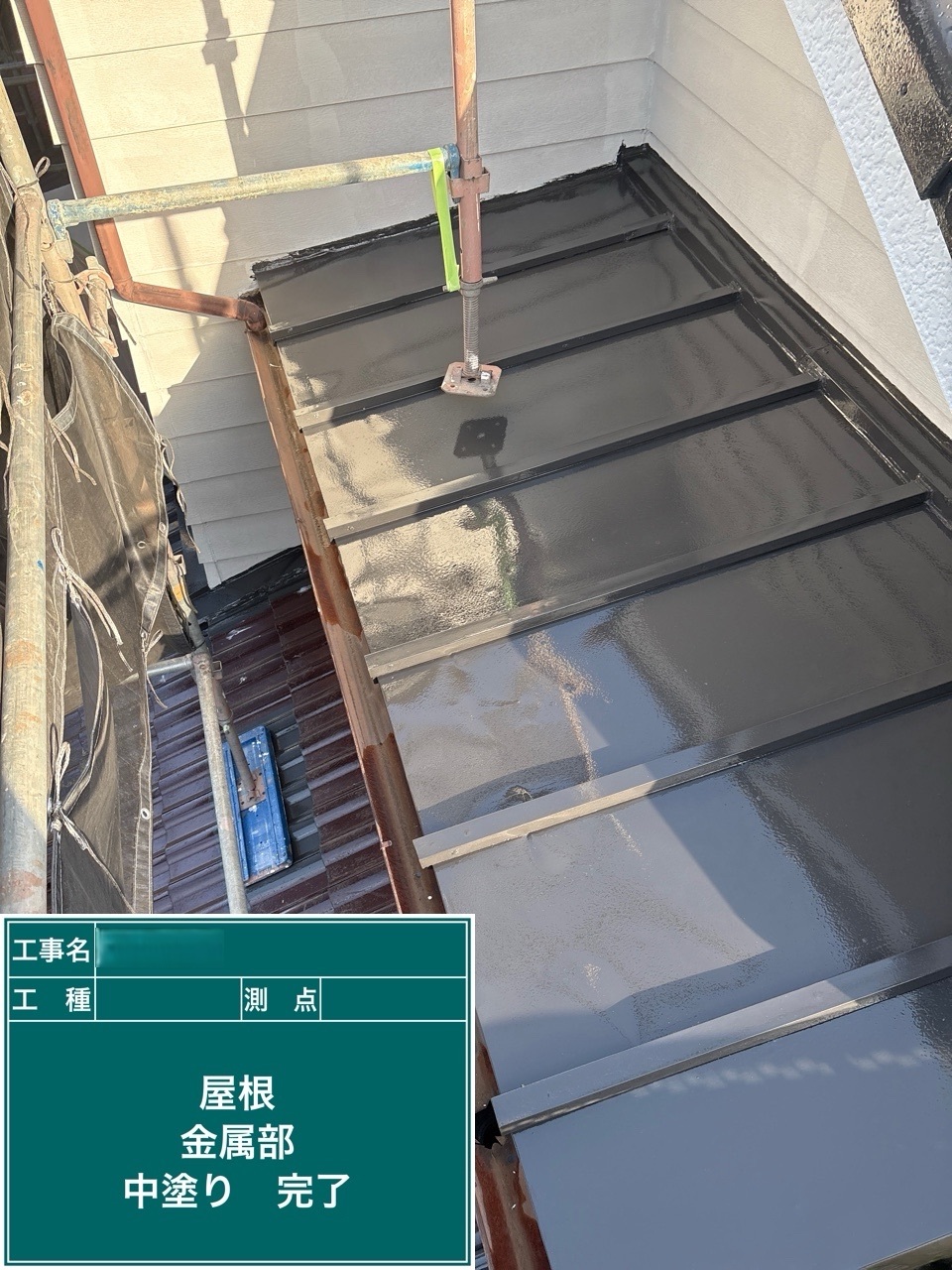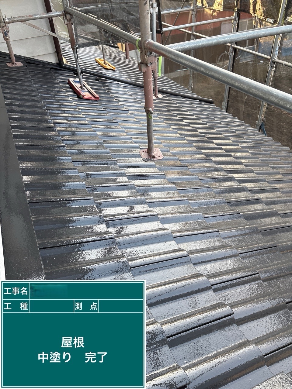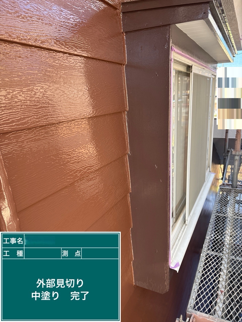 中塗り➡上塗りと2回に分けて塗装する事で性能を耐久年数の間しっかり持続させるために中塗りの塗装が必須です。