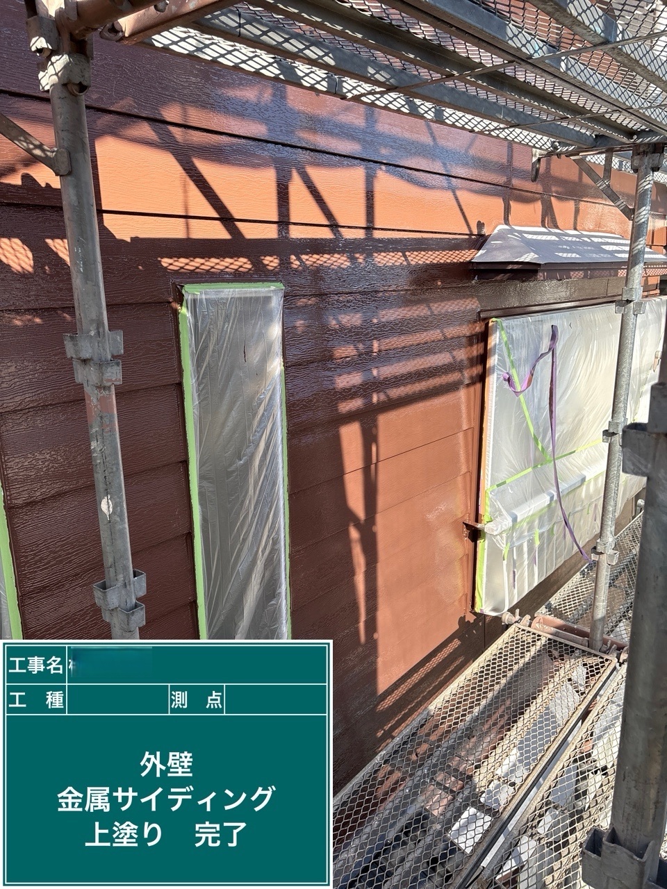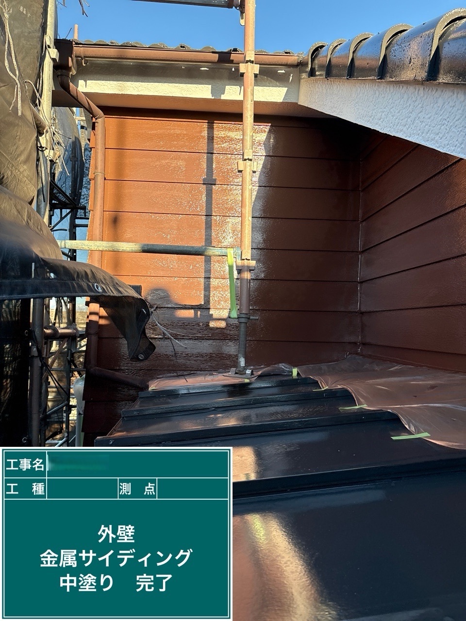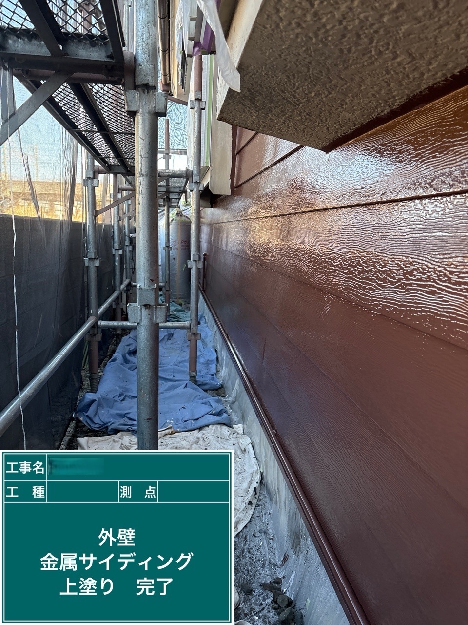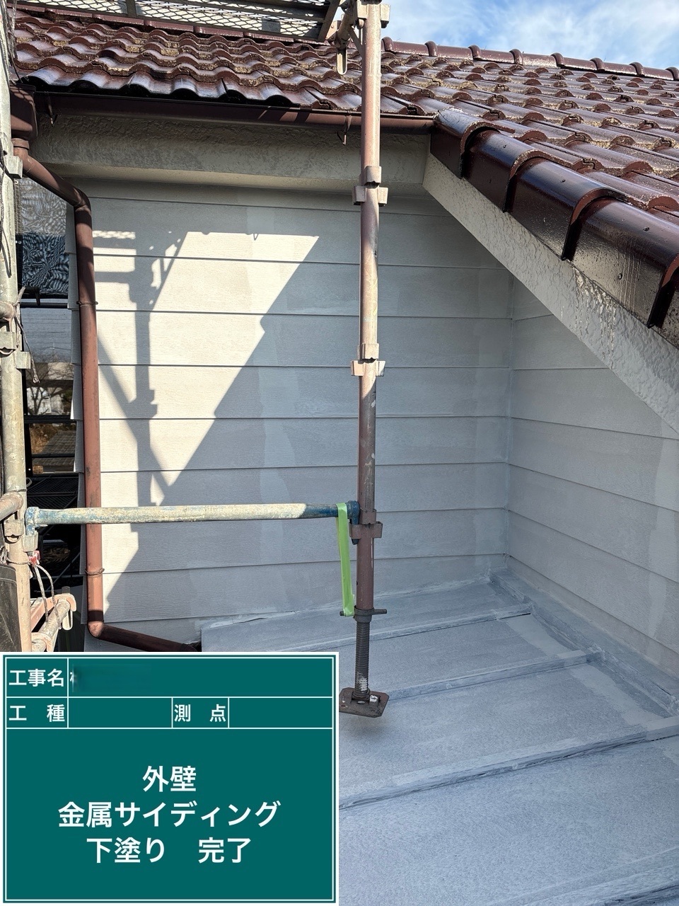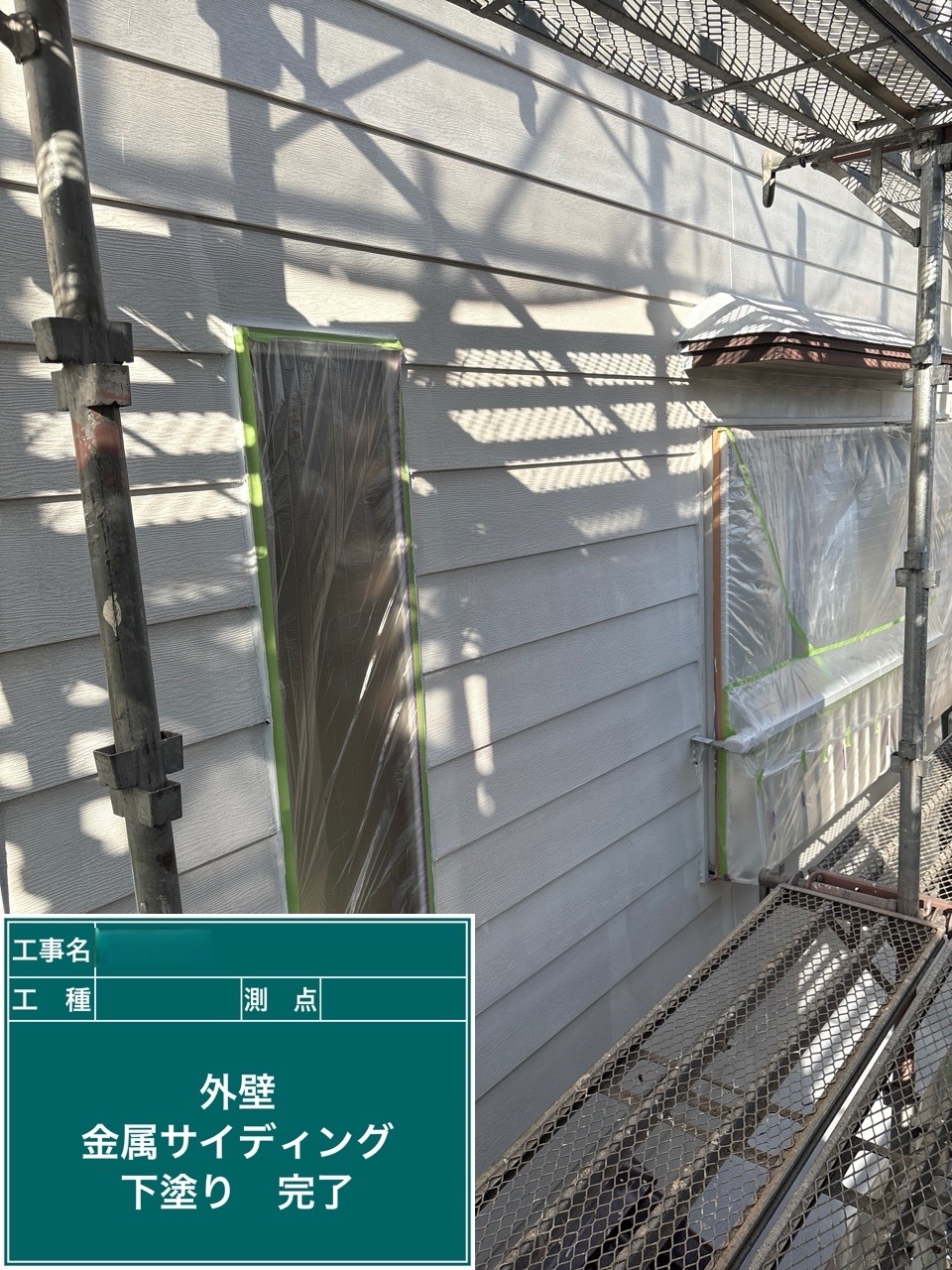 金属サイディング中塗り施工を行いました。